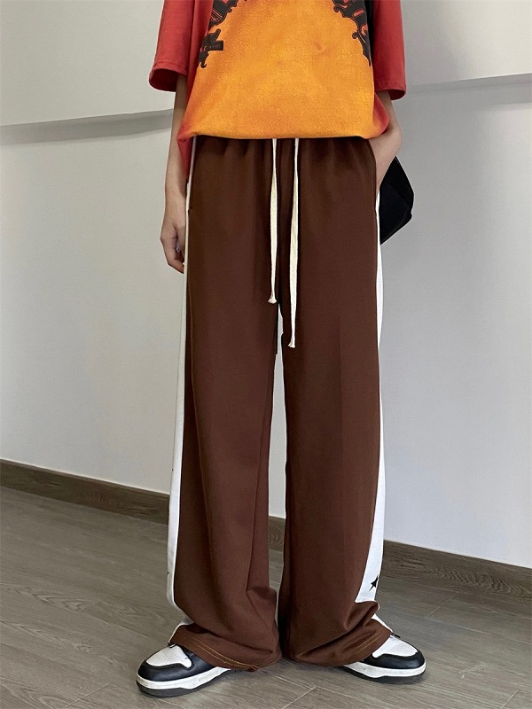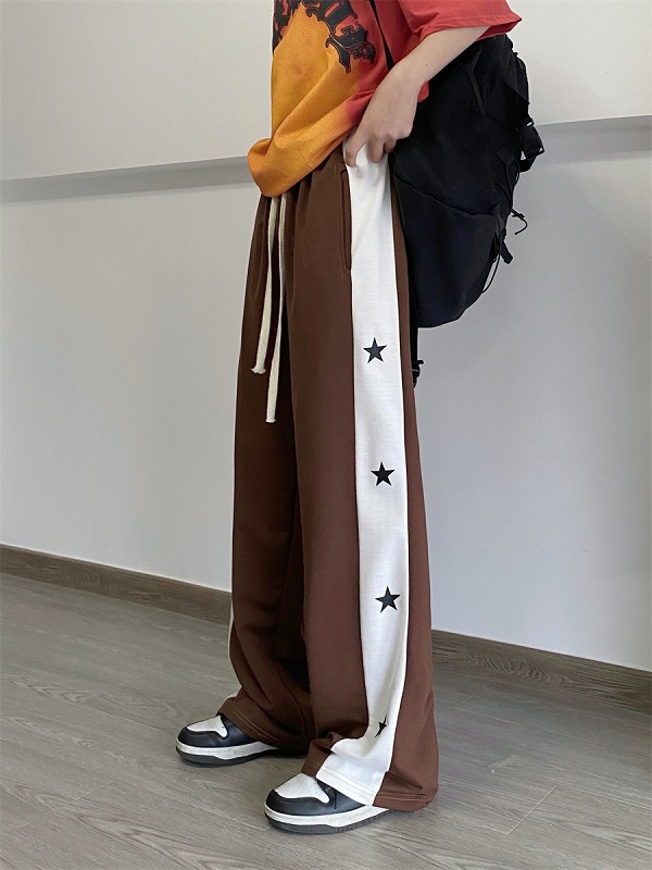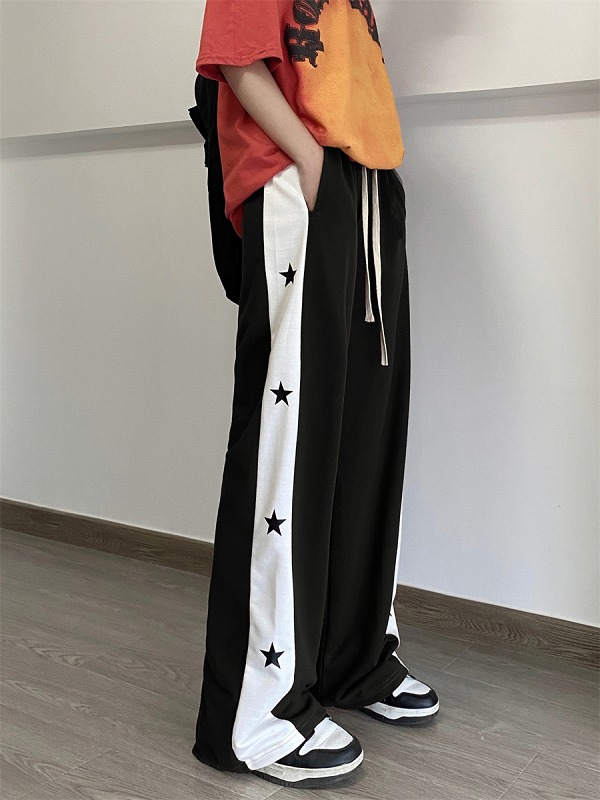 全2色 パンツ ズボン 切り替え バイカラー 配色 体型カバー プリント 原宿系ファッション 韓国風ダンス 衣装 ヒップホップ HIPHOP 個性 奇抜 かわいい 青文字系 ボトムス レディース 女
