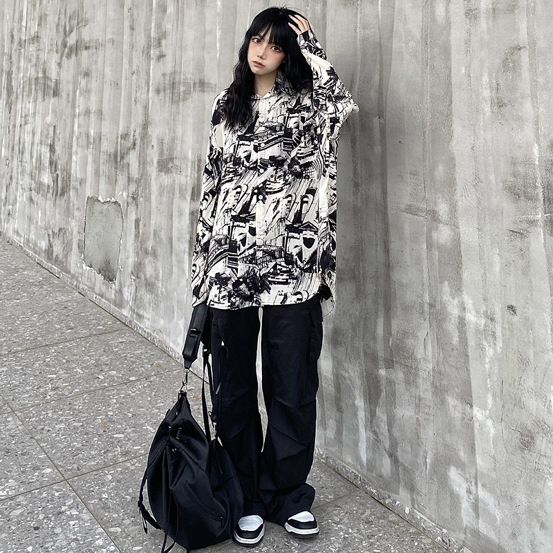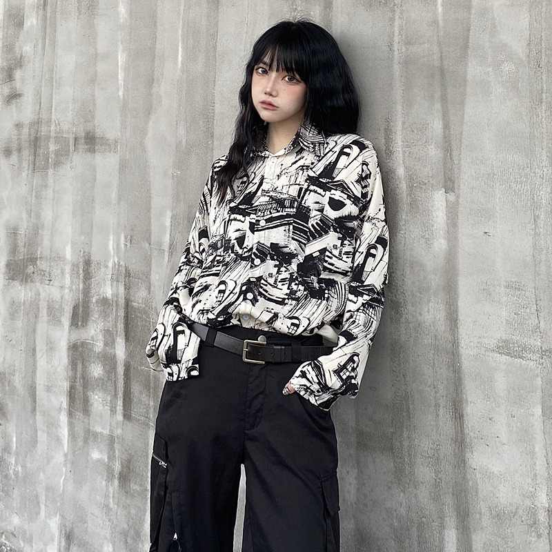 ちょうちょシルバーチェーンブラウス長袖トップスカットソーシャツ黒ブラック無地大きいサイズシンプル蝶ビッグダンス衣装ヒップホップHIPHOPレディースメンズガールズストリート個性的奇抜おしゃれかっこいい