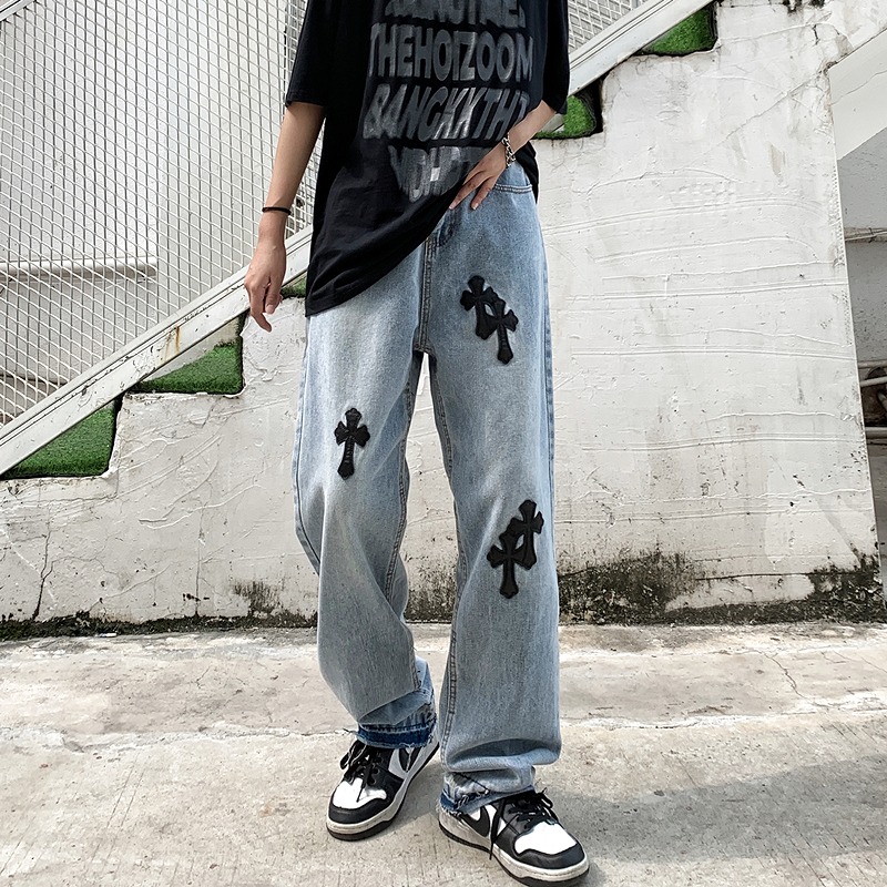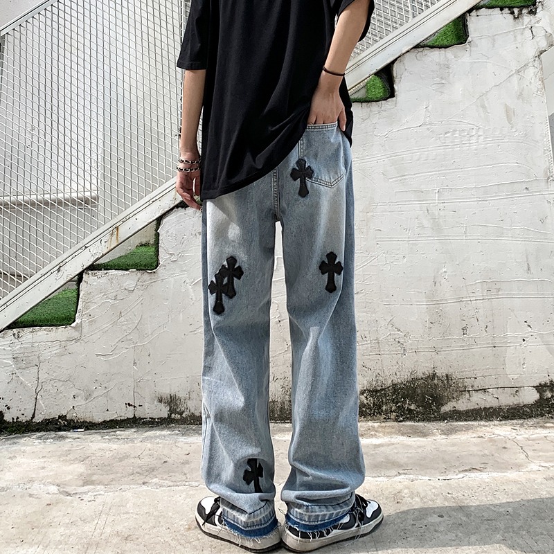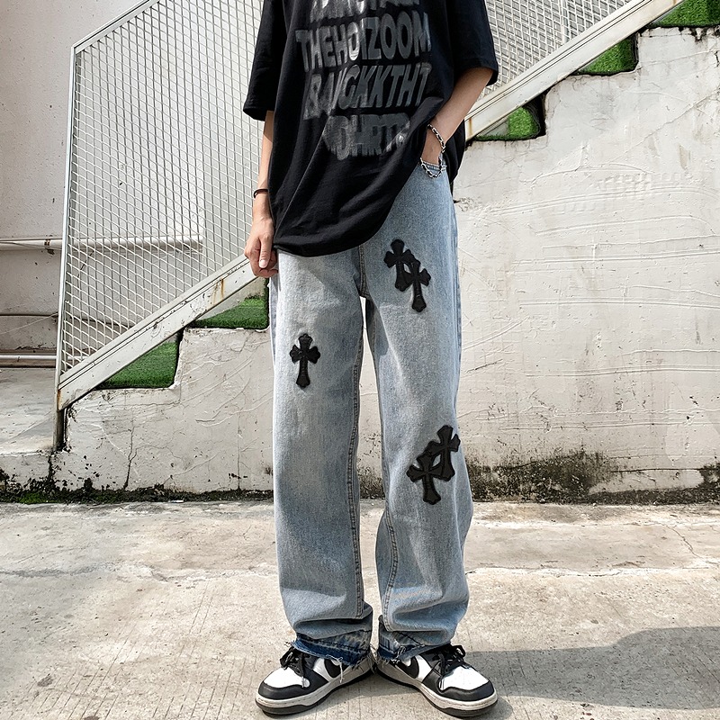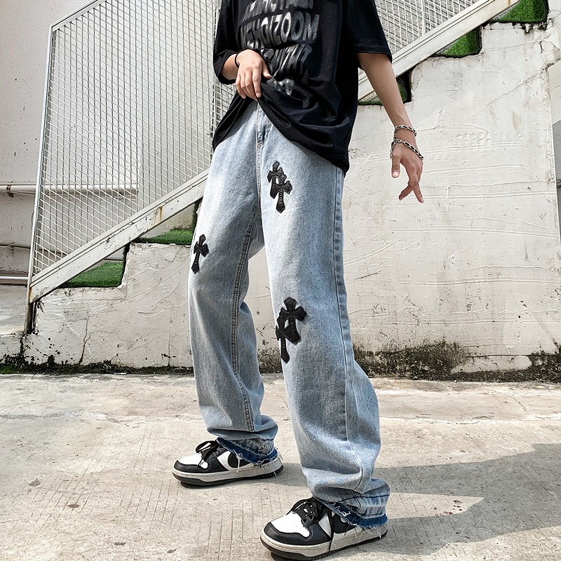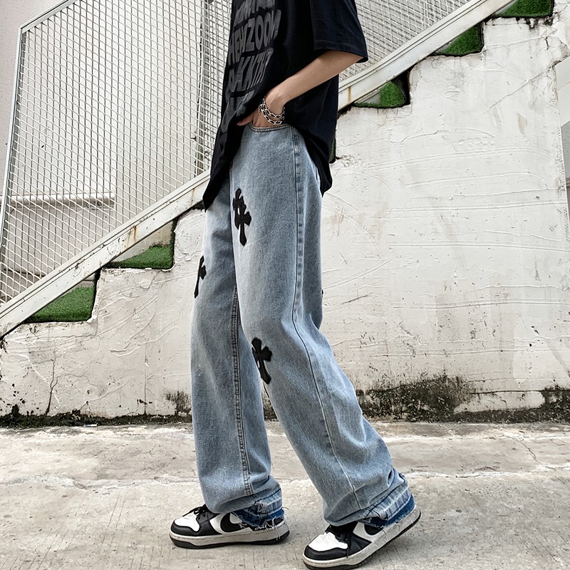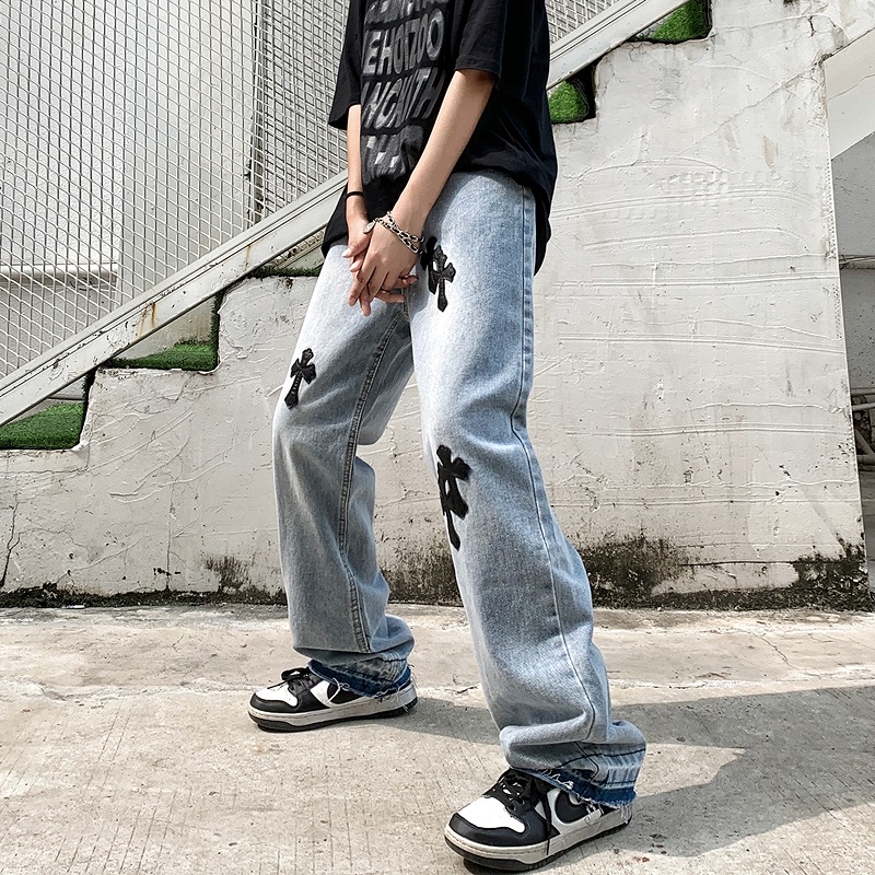 パンツ ズボン 切り替え バイカラー 配色 体型カバー デニム 落書き 大きいサイズあり ユニセックス 男女兼用 原宿系ファッション 韓国風ダンス 衣装 ヒップホップ HIPHOP 個性 奇抜 かわい