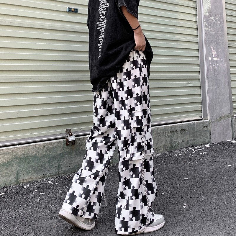 パンツ ズボン 切り替え バイカラー 配色 体型カバー ヴィンテージ風 レトロ調 大きいサイズあり 原宿系ファッション 韓国風ダンス 衣装 ヒップホップ HIPHOP 個性 奇抜 かわいい 青文字系