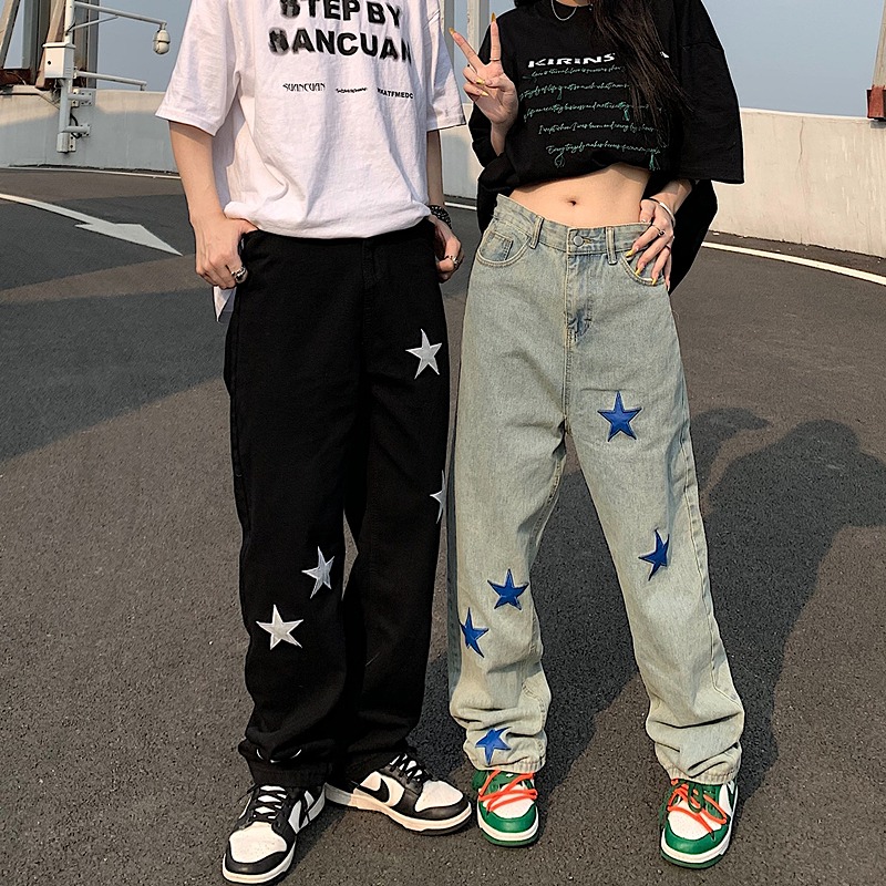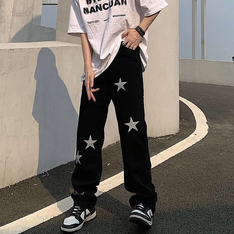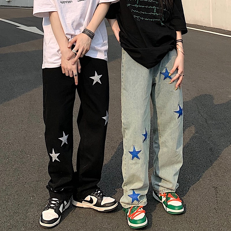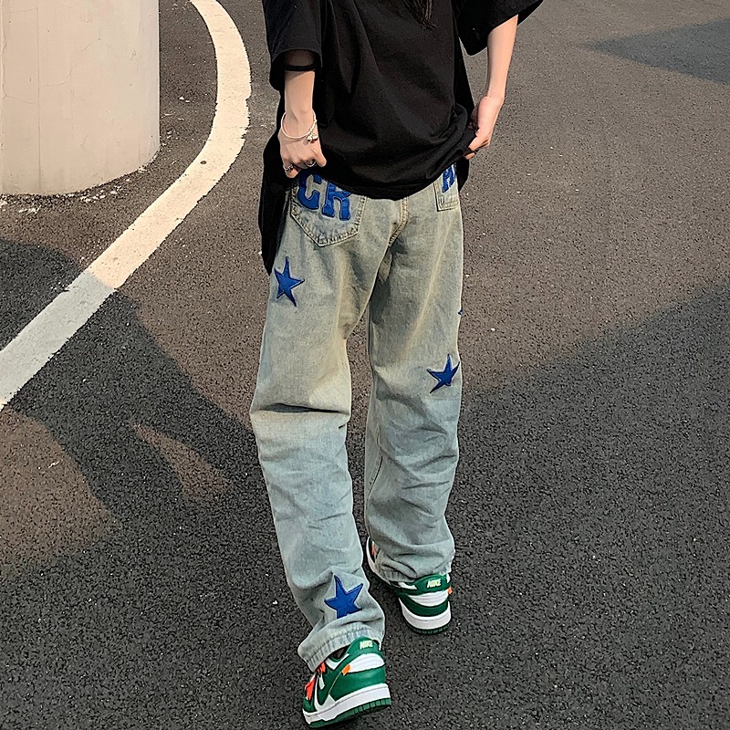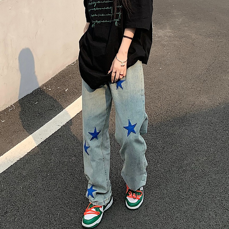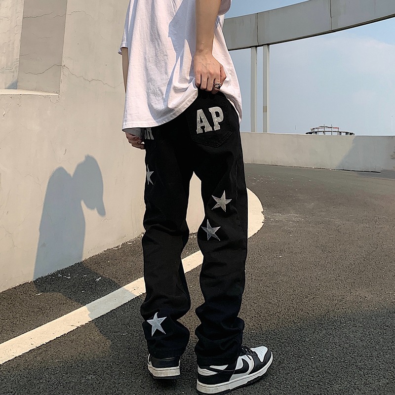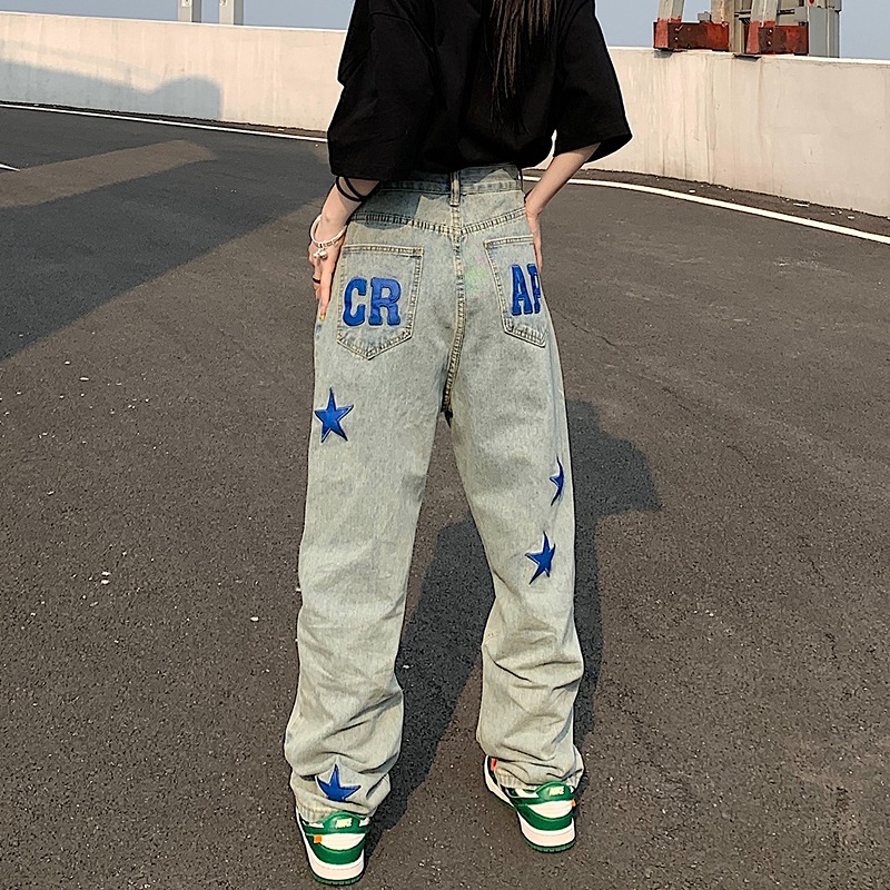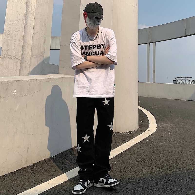 パンツ ズボン 切り替え バイカラー 配色 体型カバー デニム 落書き 大きいサイズあり ユニセックス 男女兼用 原宿系ファッション 韓国風ダンス 衣装 ヒップホップ HIPHOP 個性 奇抜 かわい