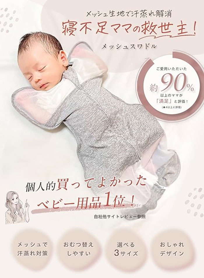 メッシュ生地で汗蒸れ解消 赤ちゃんとマ
