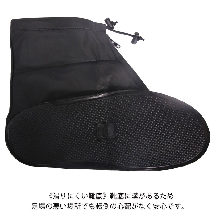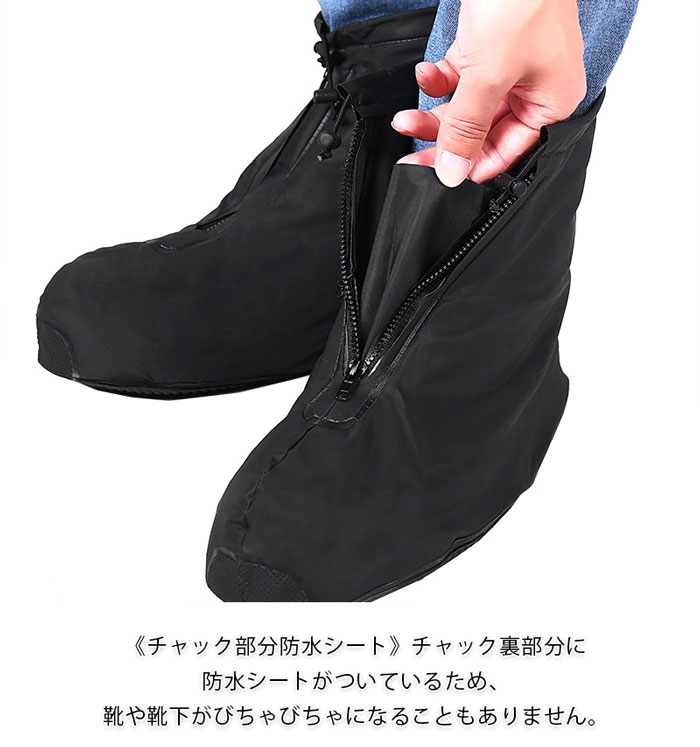靴の上から履くだけで、簡単に足もとの雨