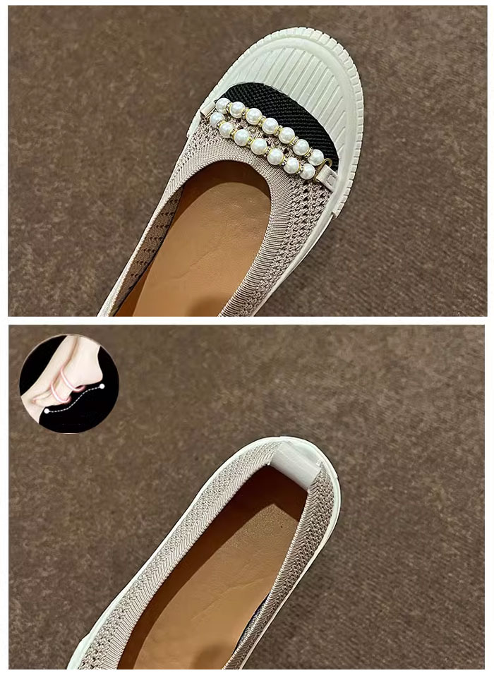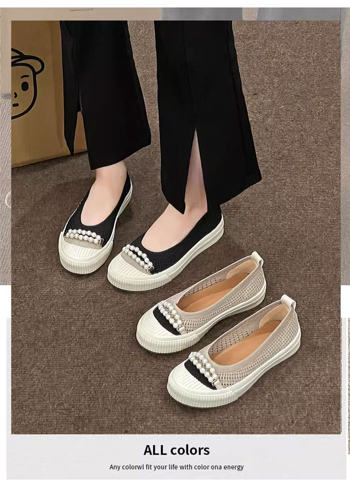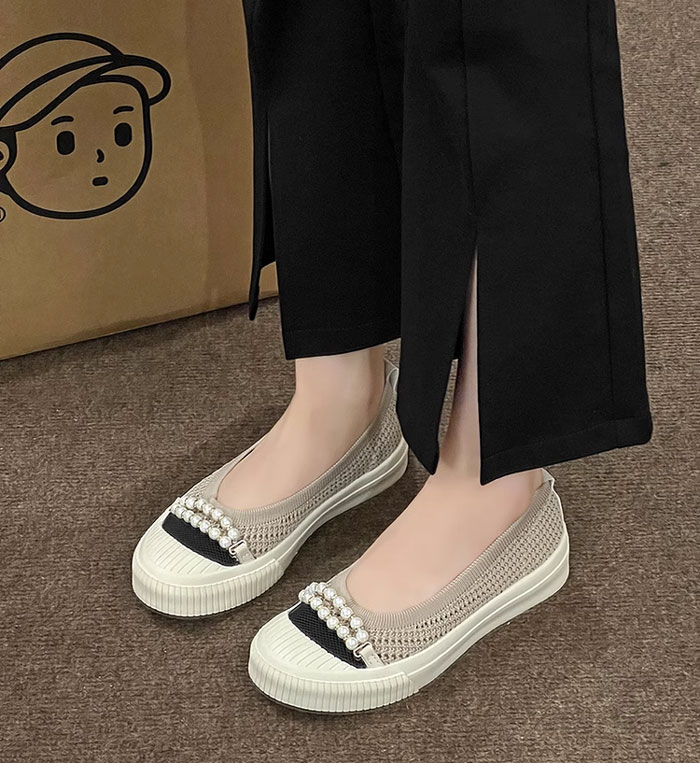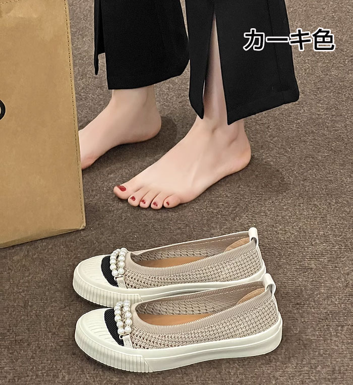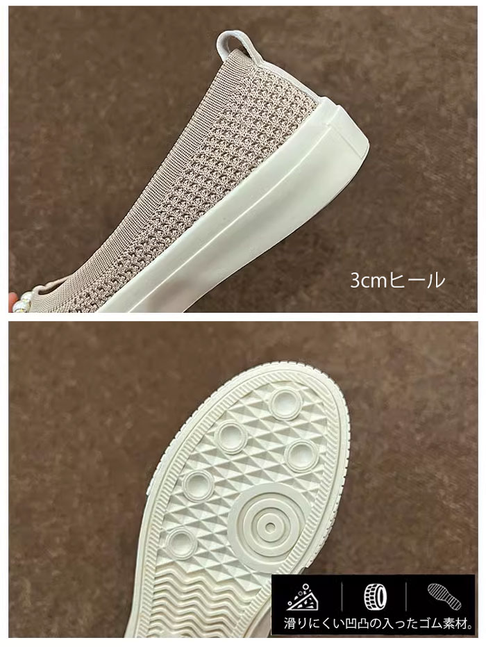紐なし パール付き スリッポン コンフ