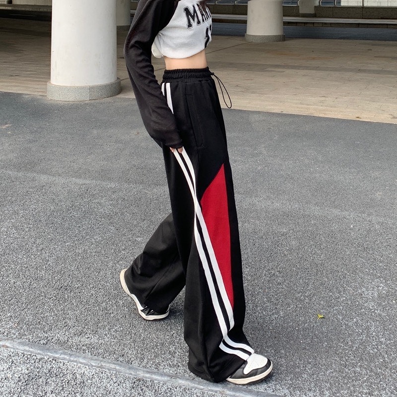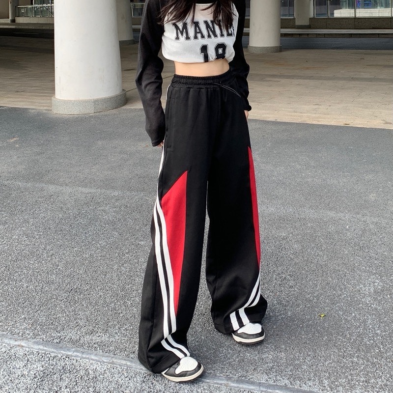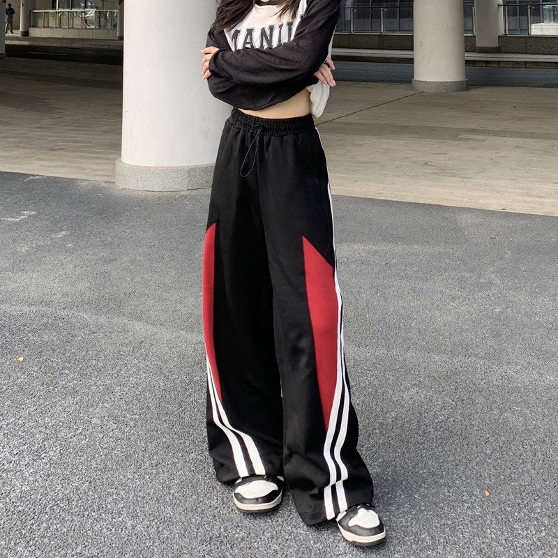 パンツ ズボン 切り替え バイカラー 配色 体型カバー デニム 落書き 大きいサイズあり ユニセックス 男女兼用 原宿系ファッション 韓国風ダンス 衣装 ヒップホップ HIPHOP 個性 奇抜 かわい