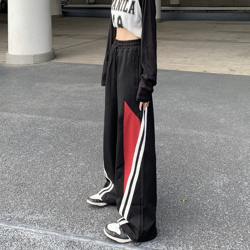 全2色 パンツ ズボン 切り替え 体型カバー デニム ヴィンテージ風 レトロ調 大きいサイズあり 原宿系ファッション 韓国風ダンス 衣装 ヒップホップ HIPHOP 個性 奇抜 かわいい 青文字系 ボ