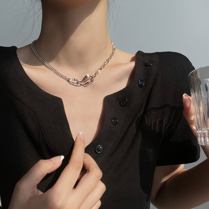 鎖骨チェーンのデザインが鎖骨の形を強調