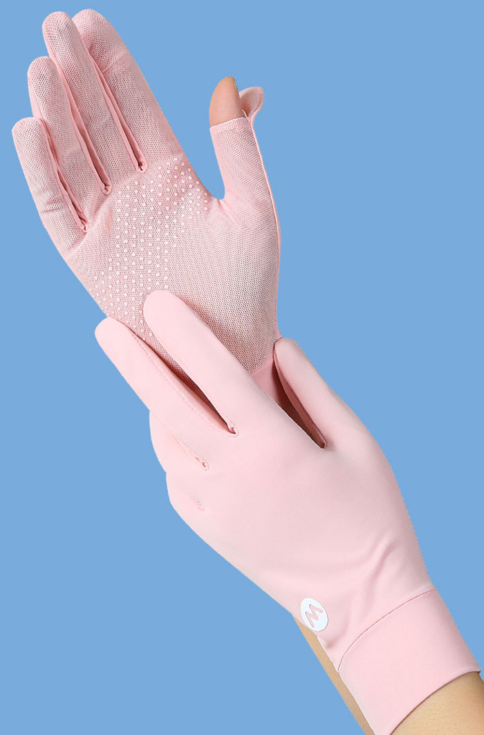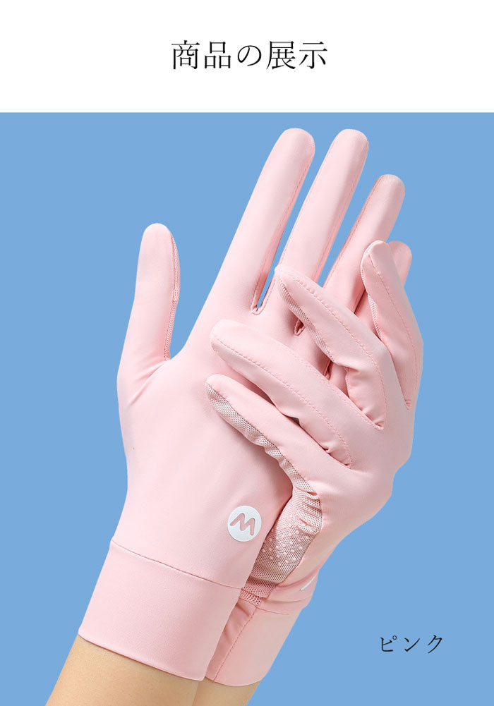 【接触冷感・暑い日にうれしい】ひんやりしていて春夏秋に最適した手袋 レディースです。アイスシルク製の生地は、ソフトで通気性に優れているだけでなく、シワになりにくく、何度でも洗濯できます。また、水や汗で濡れると気化熱の作用により冷却効果があり、タッチすると涼しい感じがします。吸湿・吸汗が優れているので、夏には蒸れにくく肌に優しいです。