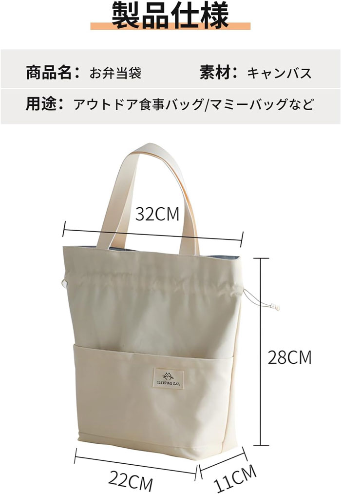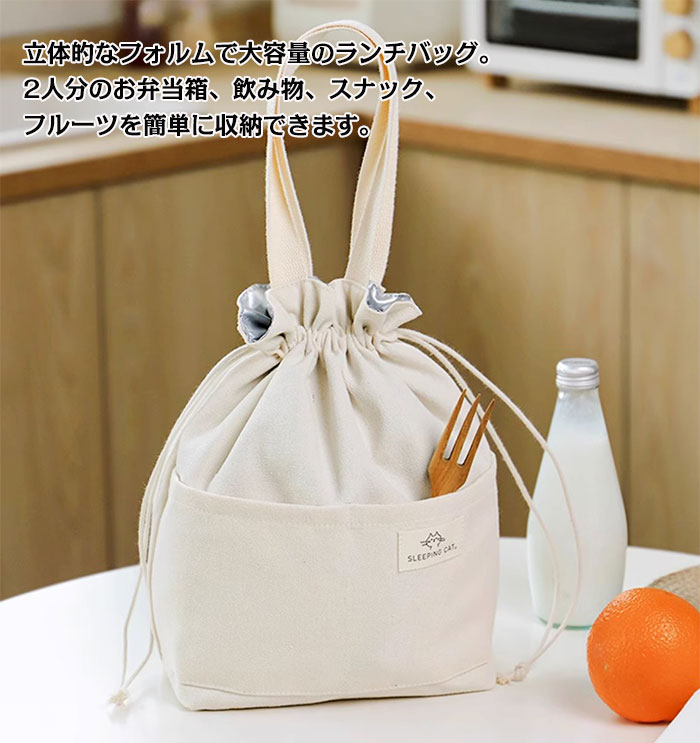 シンプルな巾着デザイン お弁当袋 大容