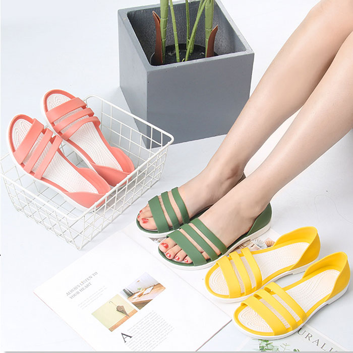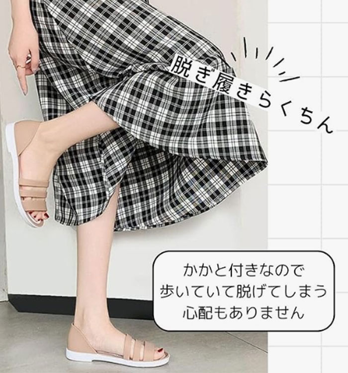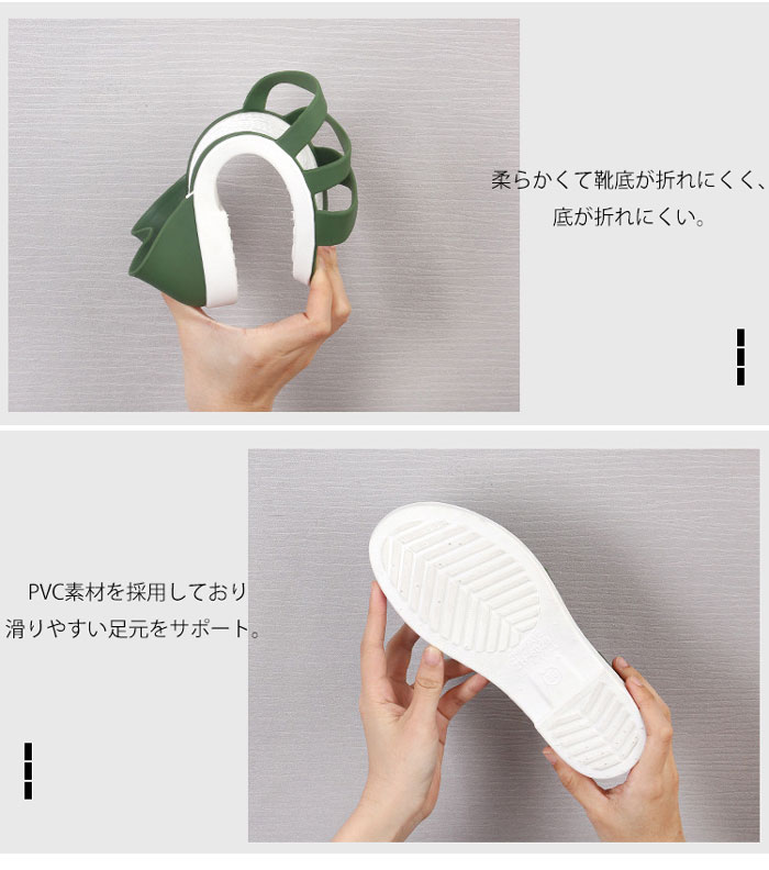 雨や汚れに強いラバー素材の3連サンダル