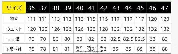 ■ サイズ 36:全長111cm ウエスト120cm モモ幅70cm 股下~靴78cm 靴サイズ23.0cm 37:全長111cm ウエスト120cm モモ幅70cm 股下~靴78cm 靴サイズ23.5cm