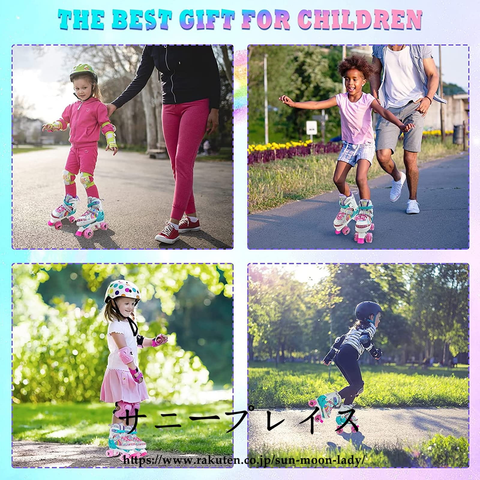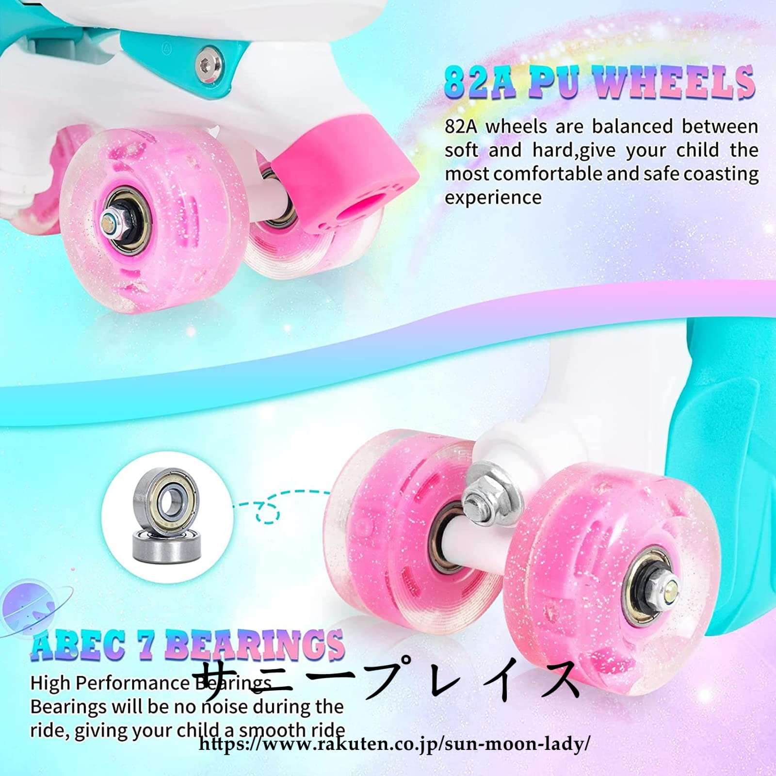 【お子様へのプレゼントに最適】絶妙なパターンデザイン、ユニークな輝く生地、ファッショナブルなカラーマッチング。誕生日、休日、クリスマスのサプライズプレゼント。お子様はローラースケートに乗ると、いつまでも楽しい瞬間を楽しむことができます。ベアリングは、屋内、屋外、アイス スケート リンク、歩道、遊歩道などに十分な耐久性があります。