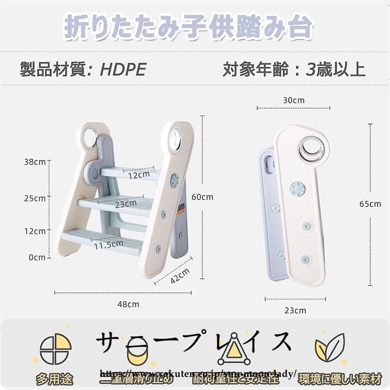 踏み台子供手すり付き 2段 3段切り替
