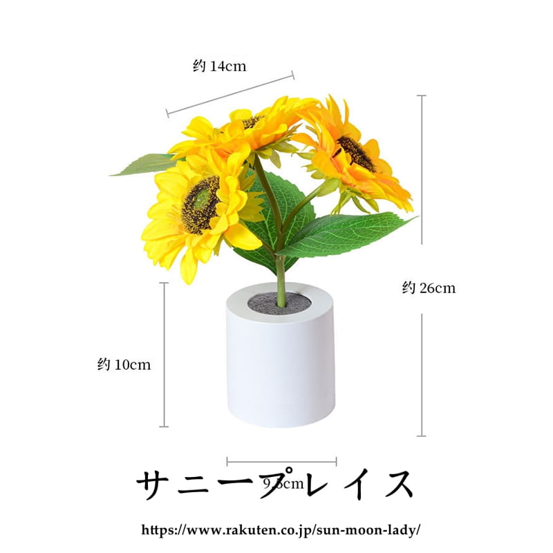 向日葵造花 間接照明 常夜灯 LEDライトポット ひまわり 造花 インテリア おしゃれ 花束 ブーケ 寝室ライト 生花質感 観葉植物 クリスマス 入学式 結婚式 卒業式 友達 家族ギフト