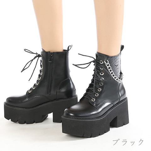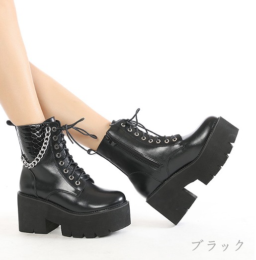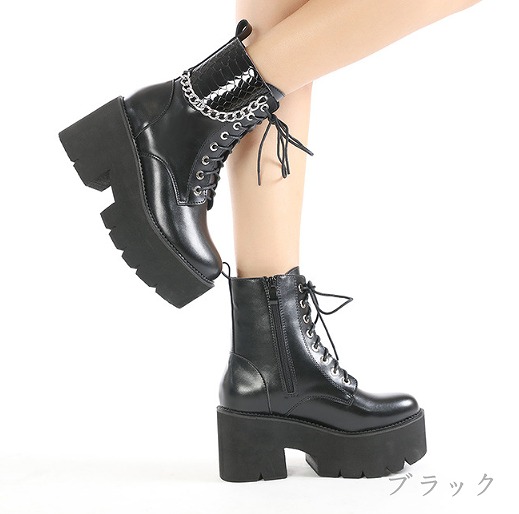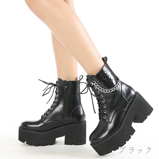 ブーツ 太いヒール 厚底 切り替え 無