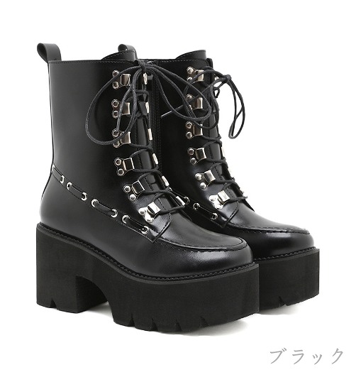 ブーツ 太いヒール 厚底 切り替え 無