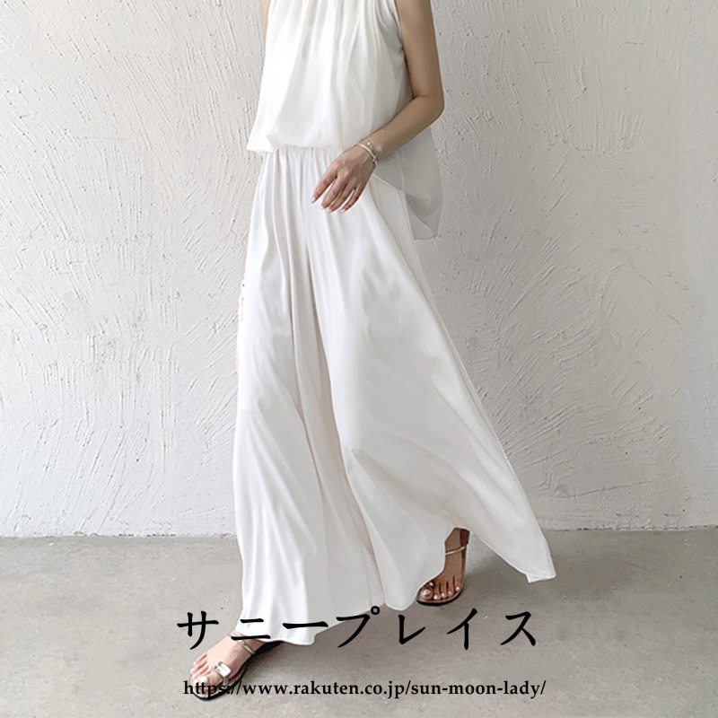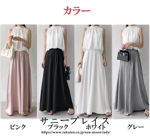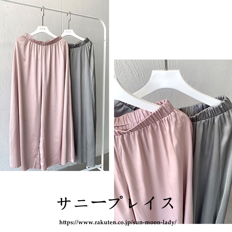 ワイドパンツ サテン レディース ロン