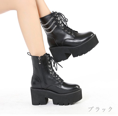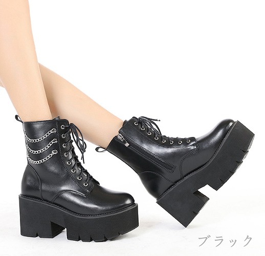 ブーツ 厚底 太いヒール 切り替え 無地 原宿系ファッション 韓国風 ダンス衣装 POP カワ 個性 奇抜 かわいい 青文字系 美足 脚長 シューズ 靴 レディース 女