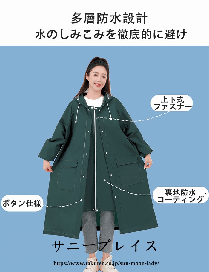 【多層防水と環境に優しいEVA素材】このレインコートは環境に優しいEVA素材を採用し、防水性が高く、丈夫で破れにくく、耐久性に優れています。耐水圧2500mm、トリプル撥水加工で、雨水が染み込まず、よく撥水されます。前面はファスナーとボタンの二重構造になっており、ファスナーを閉めてからボタンを閉めれば、水や風の侵入を防ぐことができます。コンパクトに折りたたんで、自宅やオフィス、車内に置いておけば、急な雨にも対応できます。