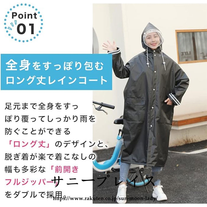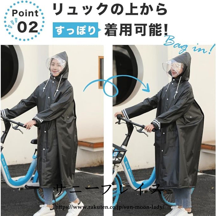 【多機能ロング丈レインコート】このユニセックスレインコートは自転車、ウォーキング、バックパッカーに使用することができます。膝まで覆うロング丈で、体をしっかりカバーし、レインブーツを履けば、足を濡らさず、全身を雨から守ることができます。レインコートの背中にはスナップボタンが付いており、普段はボタンを付けたまま使用できますが、ボタンを外すとかなりゆとりのある大きめのサイズに変わり、バックパックやバッグを背負っていてもゆったりと着ることができます。台風や梅雨の季節はもちろん、通勤・通学や自転車、雨天時の作業にも邪魔にならずに重宝します。