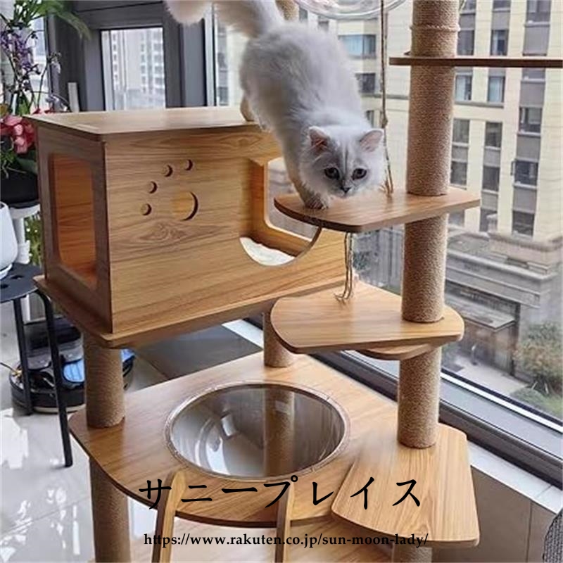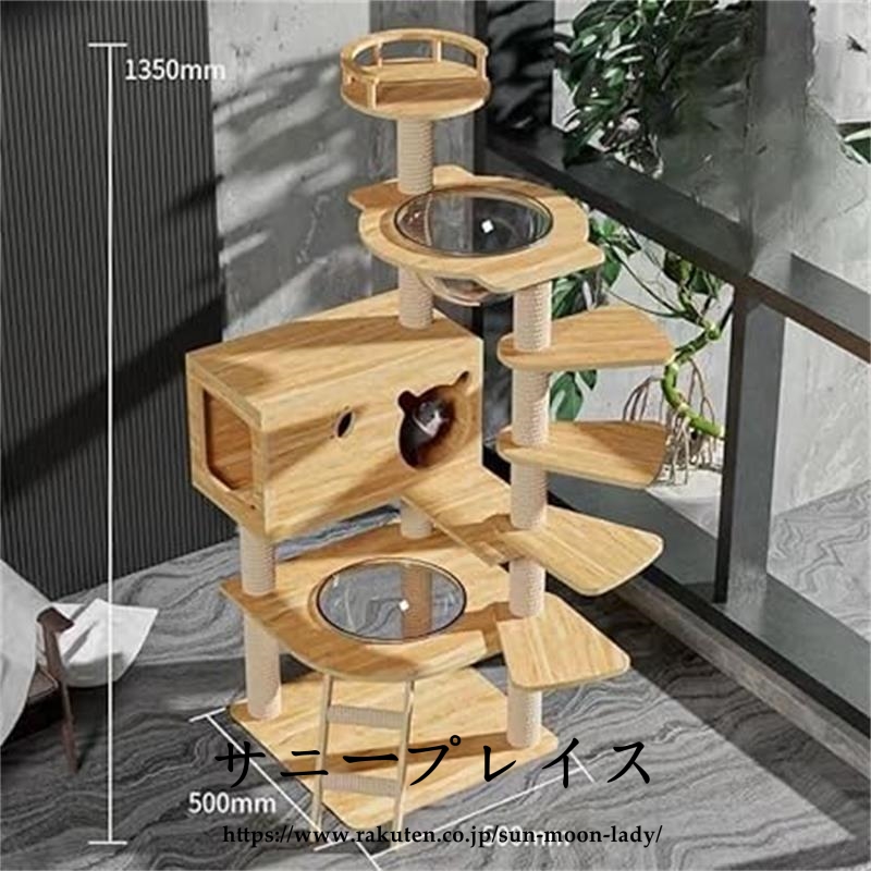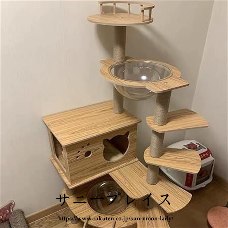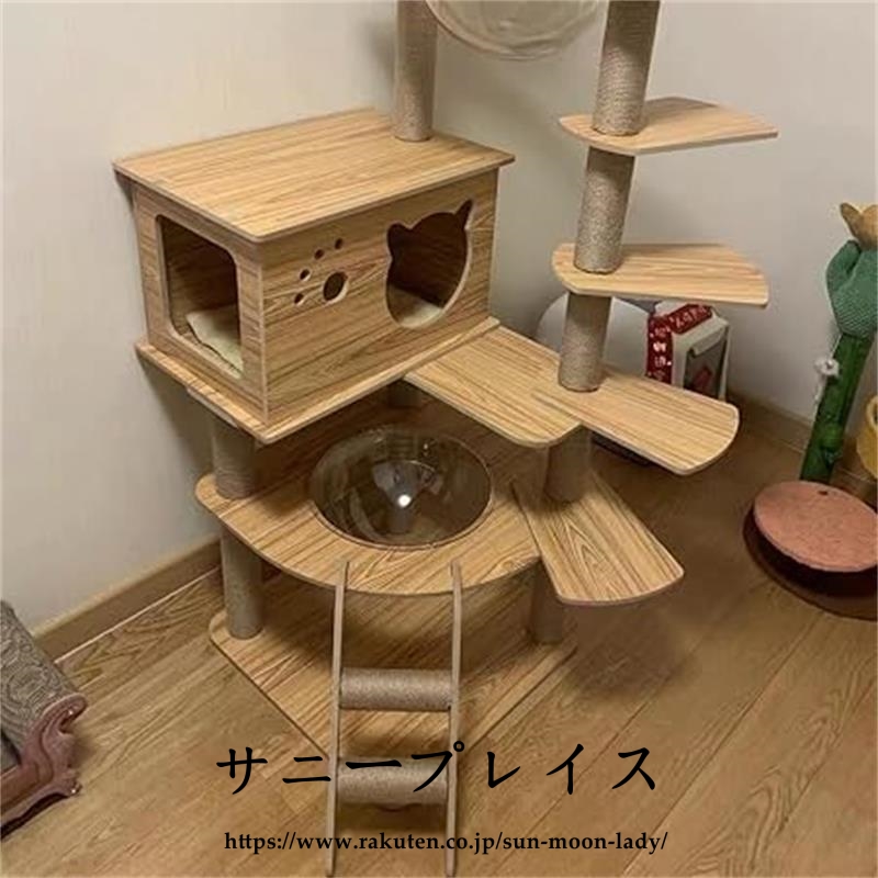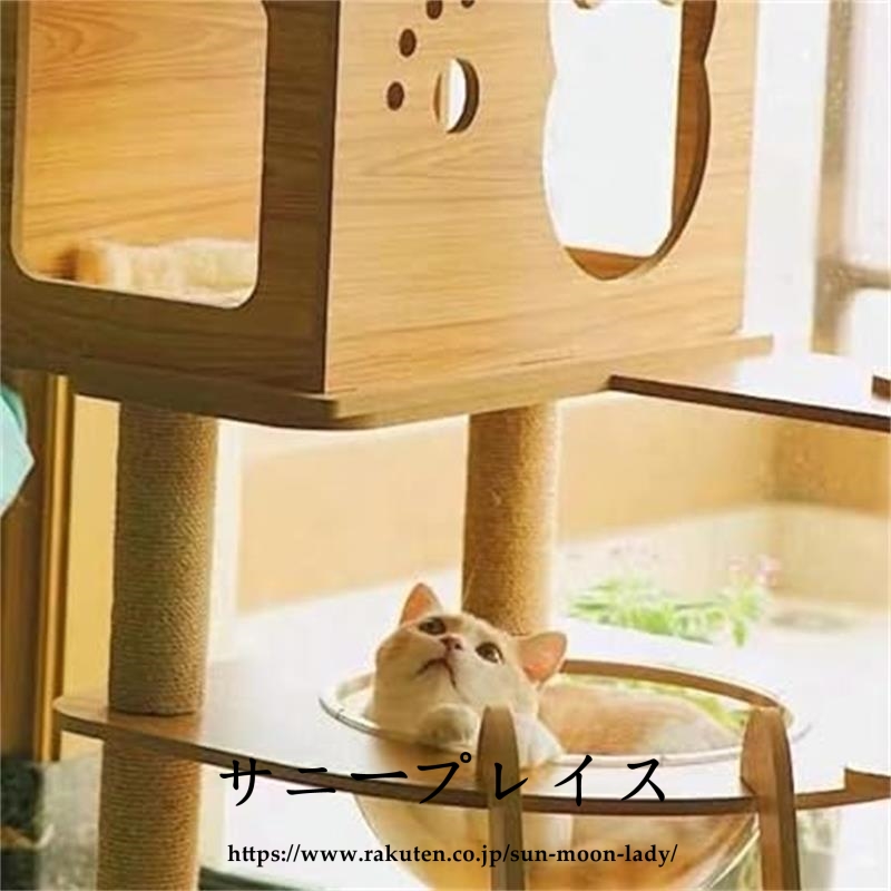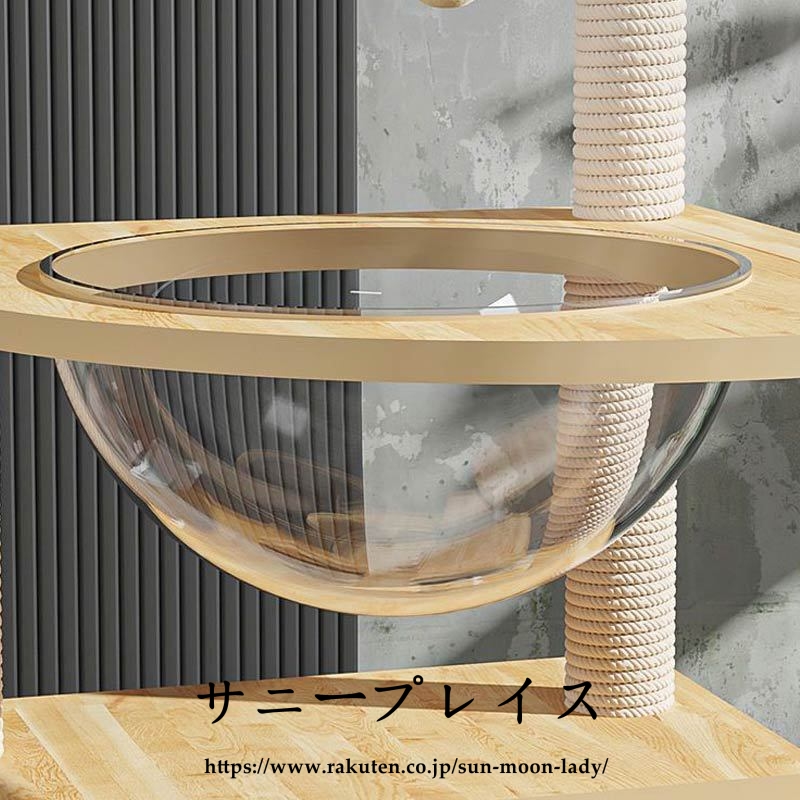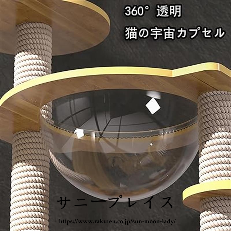 キャットタワー 透明宇宙船 頑丈 据え置き木製 麻紐 爪とぎボール 猫ベッド 大型 木目調ペット ペットグッズ 猫用品 キャットタワー