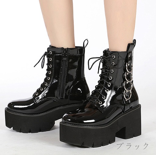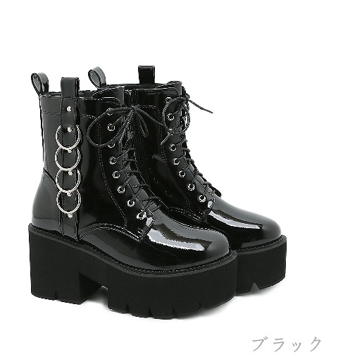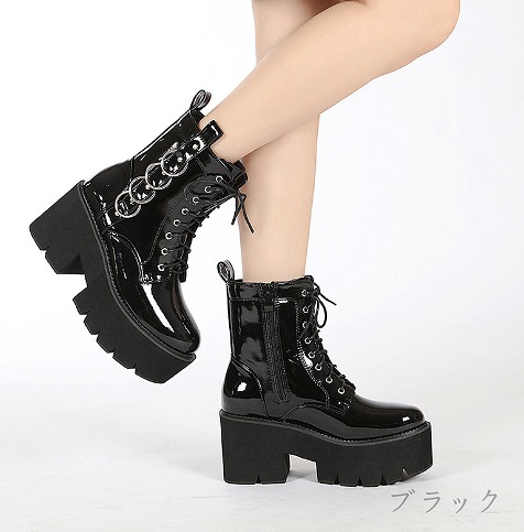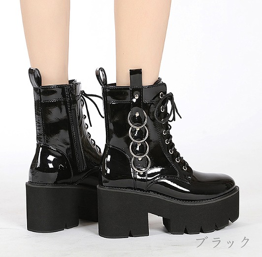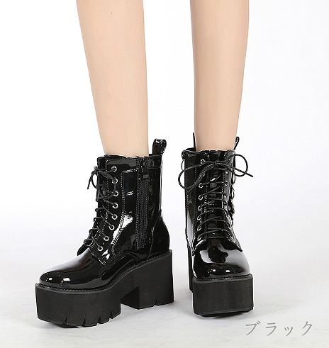 ブーツ 太いヒール 厚底 切り替え 無