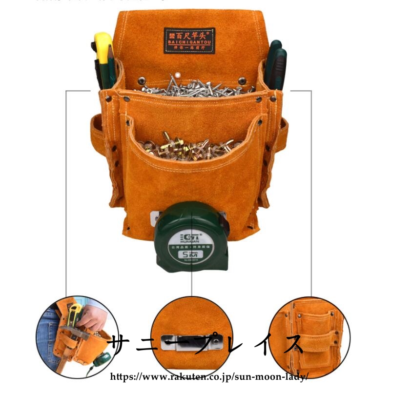 腰袋 大工 クニーズ 革製 電工 シングル バッグ 腰袋 片側 ふくろ倶楽部花 ガーデン DIY DIY 工具 収納 保管用品 工具収納用品 腰袋 道具袋
