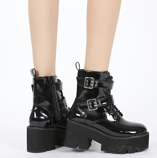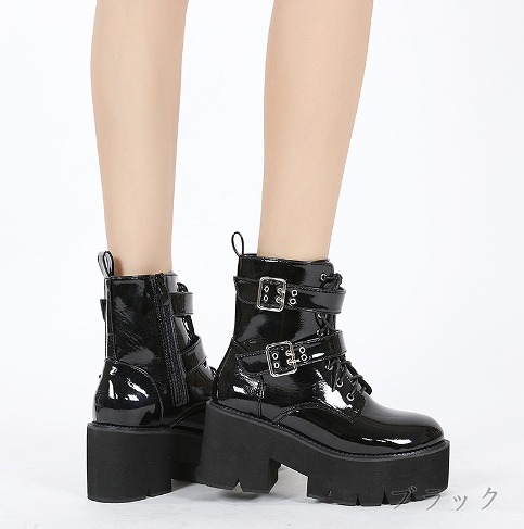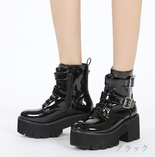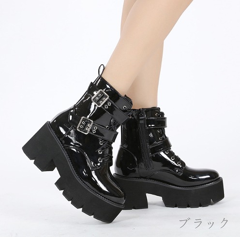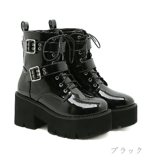 ブーツ 丸トウ 厚底 太いヒール 無地