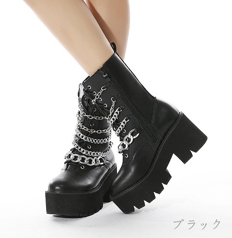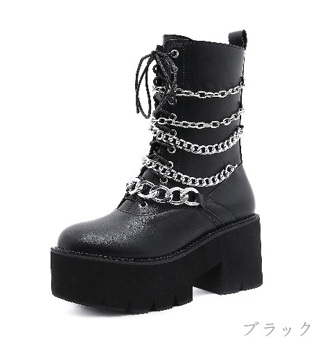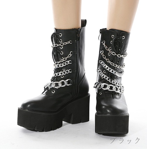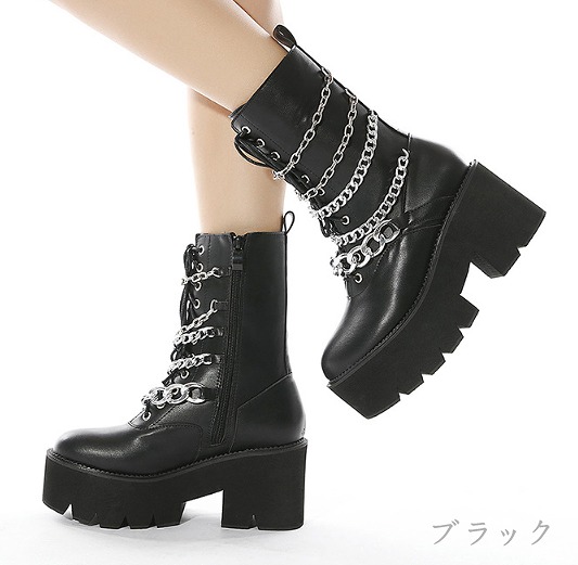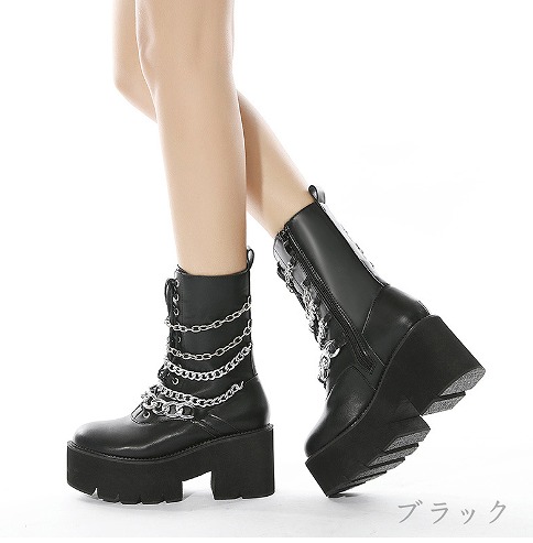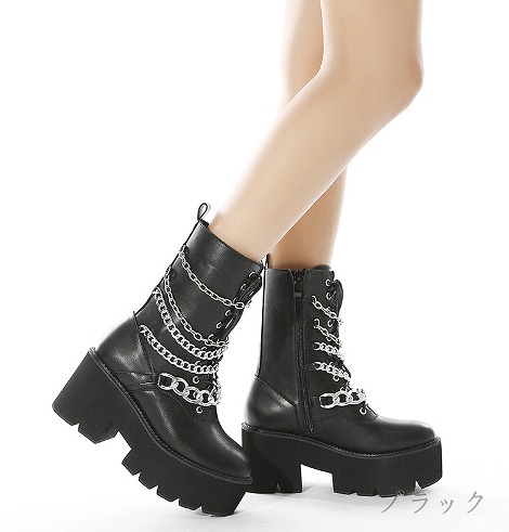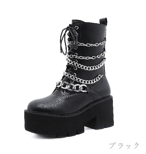 ブーツ 切り替え 太いヒール 厚底 無