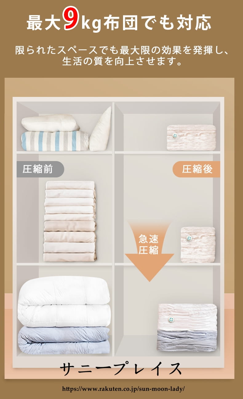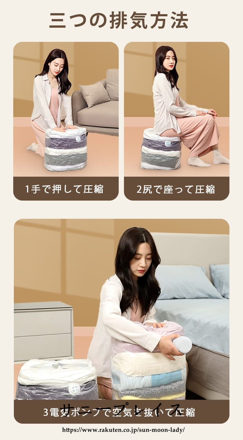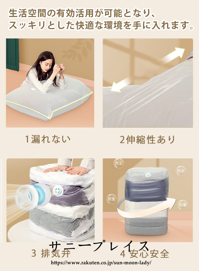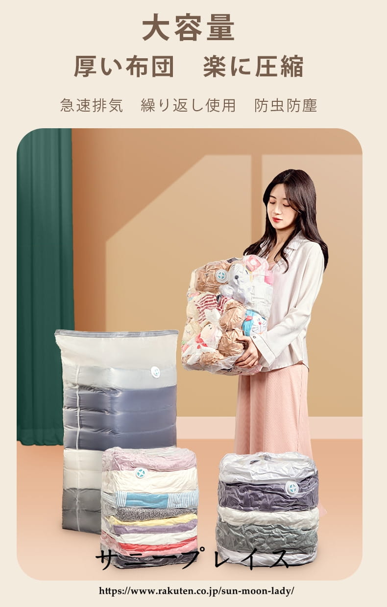 スペース節約 掃除機不要 立体圧縮袋