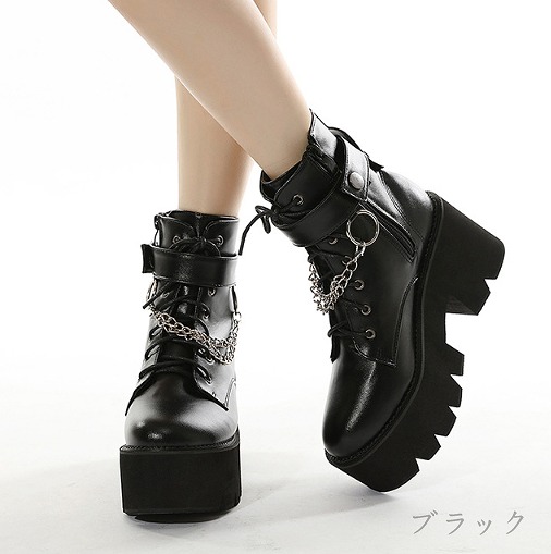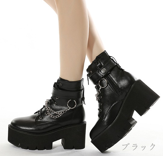 ブーツ 切り替え 太いヒール 無地 s