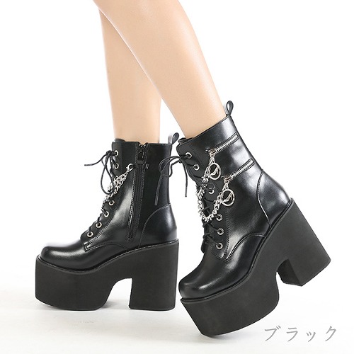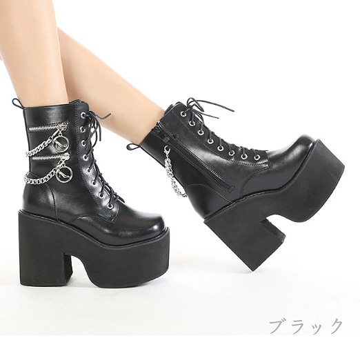 ブーツ 切り替え 太いヒール 無地 s