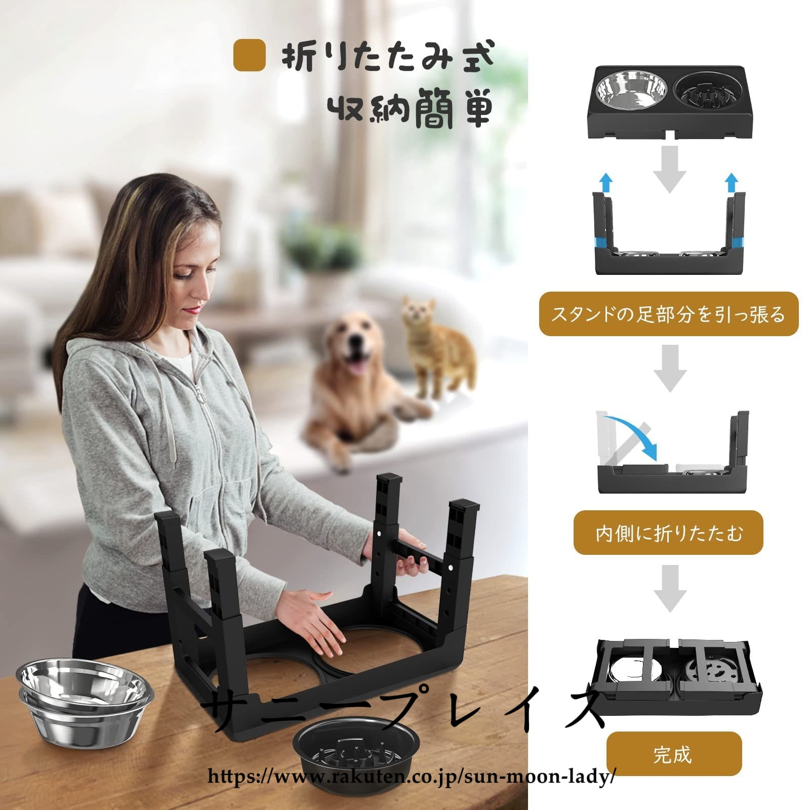 「広い適用性」 ステンレスボウルは取り外して使用でき、在宅の利用はもちろん、愛犬と散歩やトレーニング時、又は外出、旅行先で簡単にペットのお食事を用意できます。スタンドを含めて最小42.5*24*8cmの大きさで、スッキリ収納できます。災害時に避難先などにも使え、ひとつ持っておくと安心です。