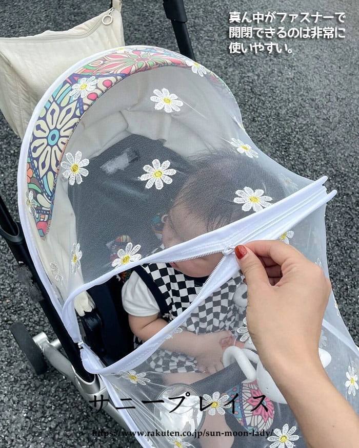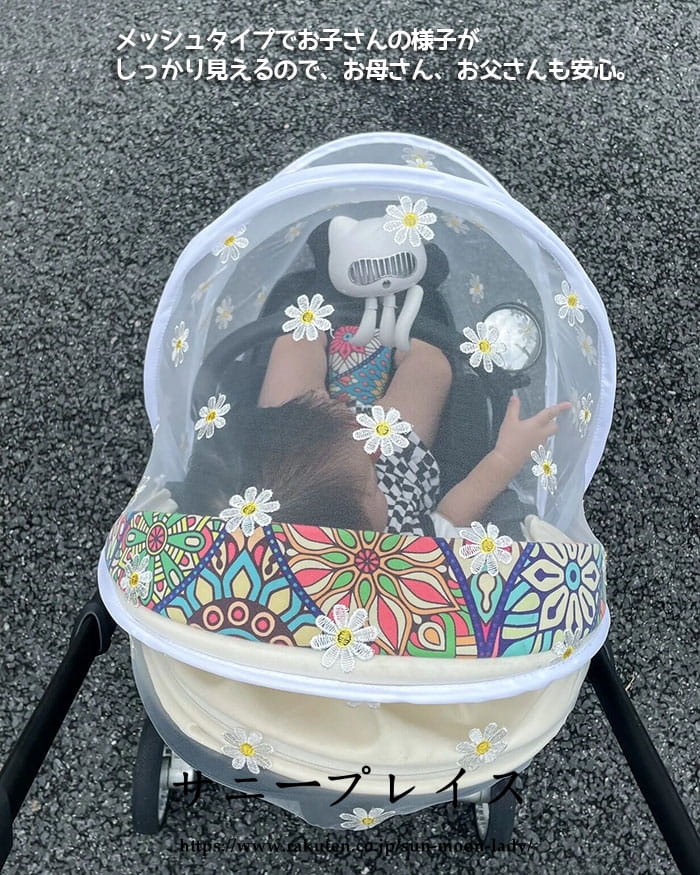 2023かわいい刺繍の赤ちゃんを強い日差し・紫外線と虫刺されから守るネットです。