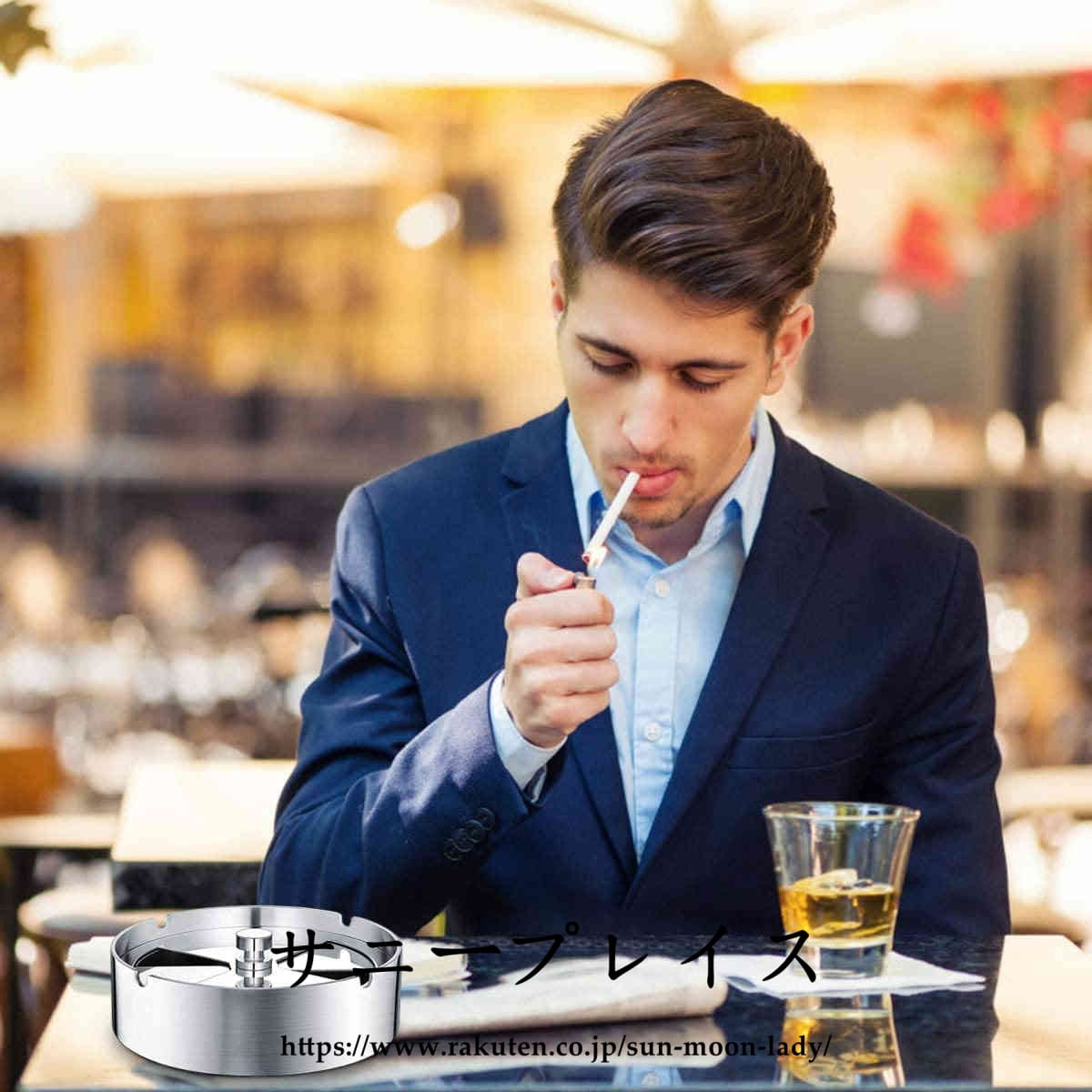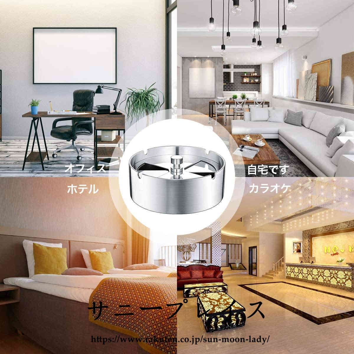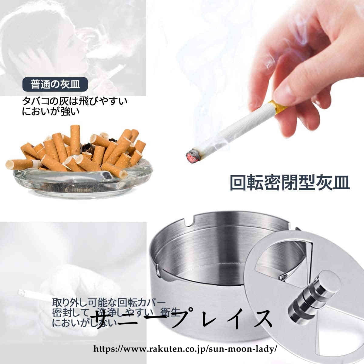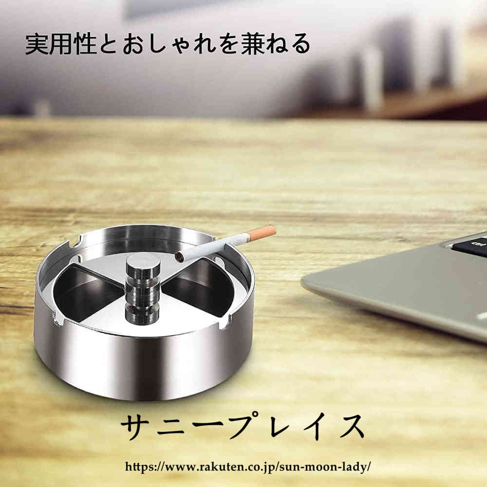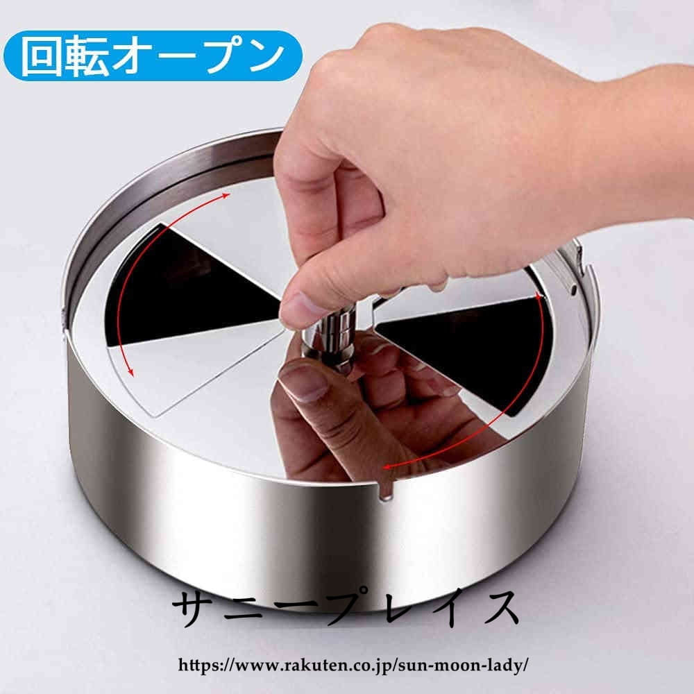 灰皿 ふた付き 大容量 ステンレス素材 卓上 屋外用 回転式蓋 密閉 密閉 卓上 客室 オフィス スタイリッシュ コンパクト