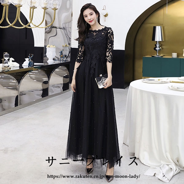 ロングドレス 演奏会 黒 ドレス パー