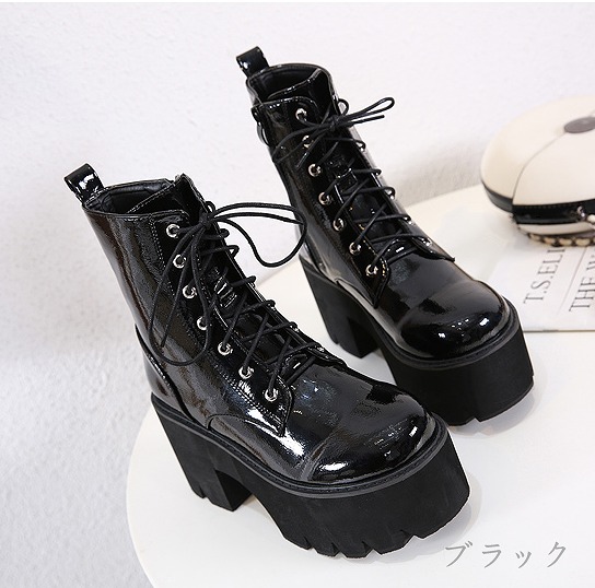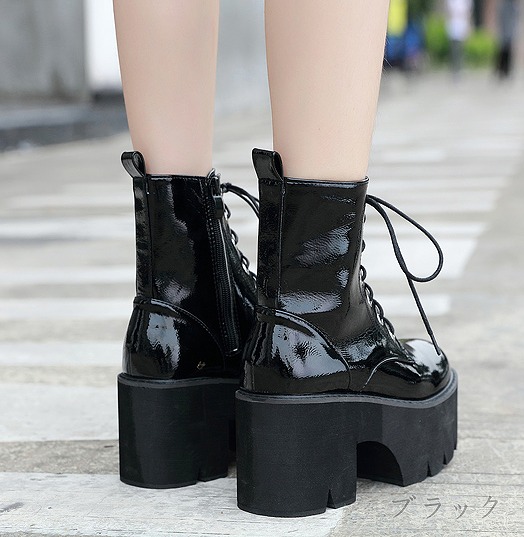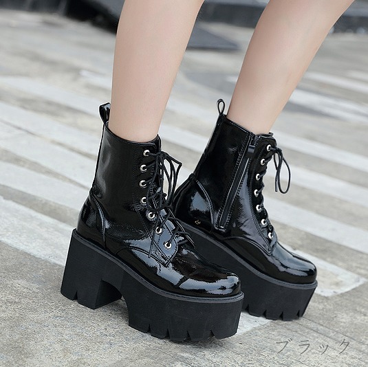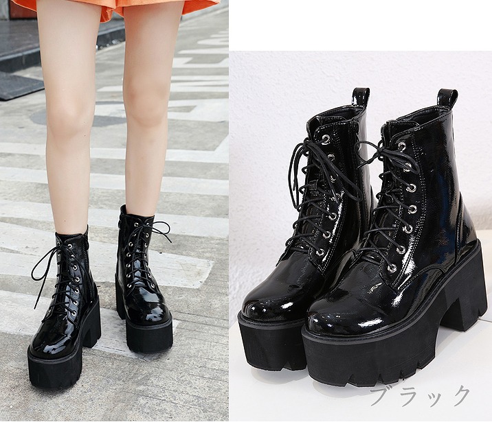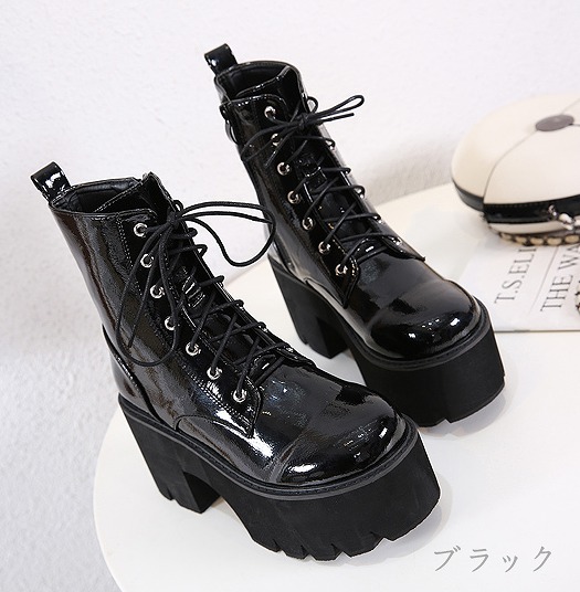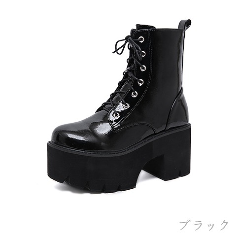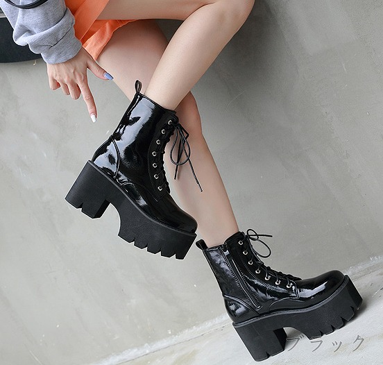 ブーツ 太いヒール 切り替え 無地 英