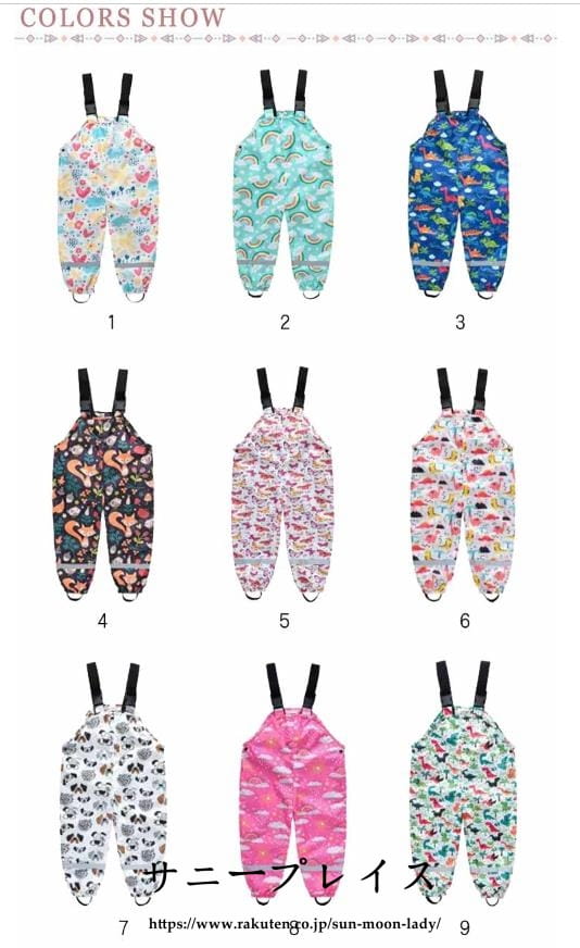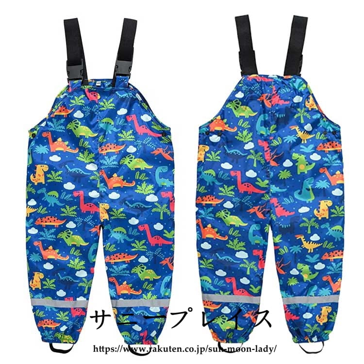 撥水 オーバーオール 小学生 防水 サイズ調整可 パンダ プレイウェア お砂場着 キッズ 男の子 女の子 水遊び 遊び着 通学 通園 雨具 汚れ防止 レインパンツ 幼稚園 花柄 レインボー 100-1