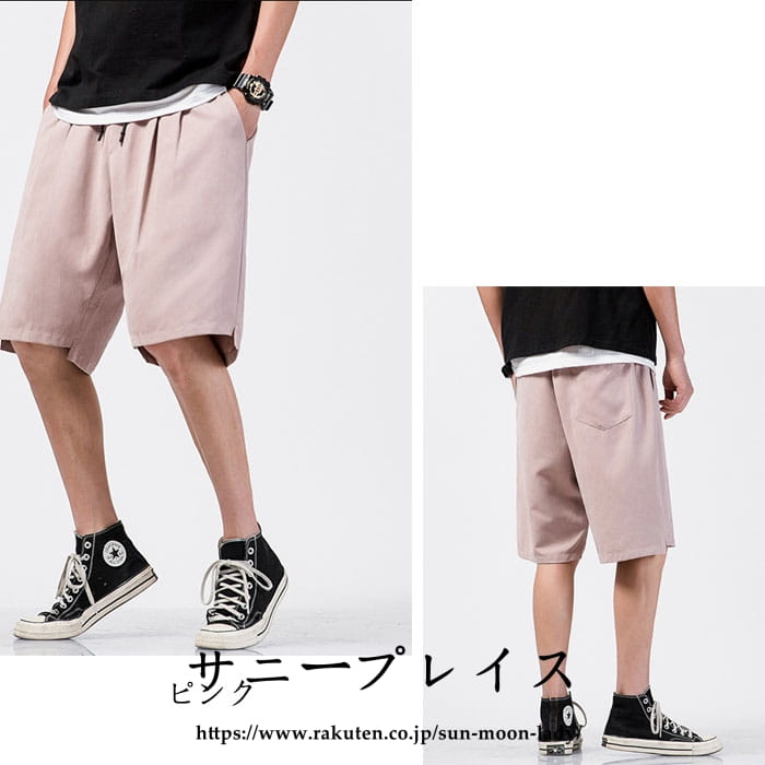 ハーフパンツ メンズ 綿麻 パンツ カーゴパンツ サルエルパンツ メンズ 大きいサイズ 薄手 カジュアル サルエル パンツ 夏 ハーフパンツ ゆったりパンツ ワイドパンツ 袴パンツ M-5XL ウエス