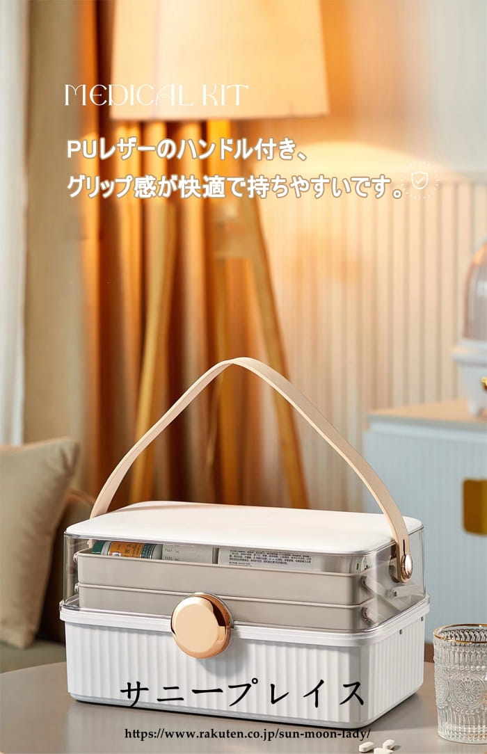 救急箱 おしゃれ 3段収納 レザー取っ