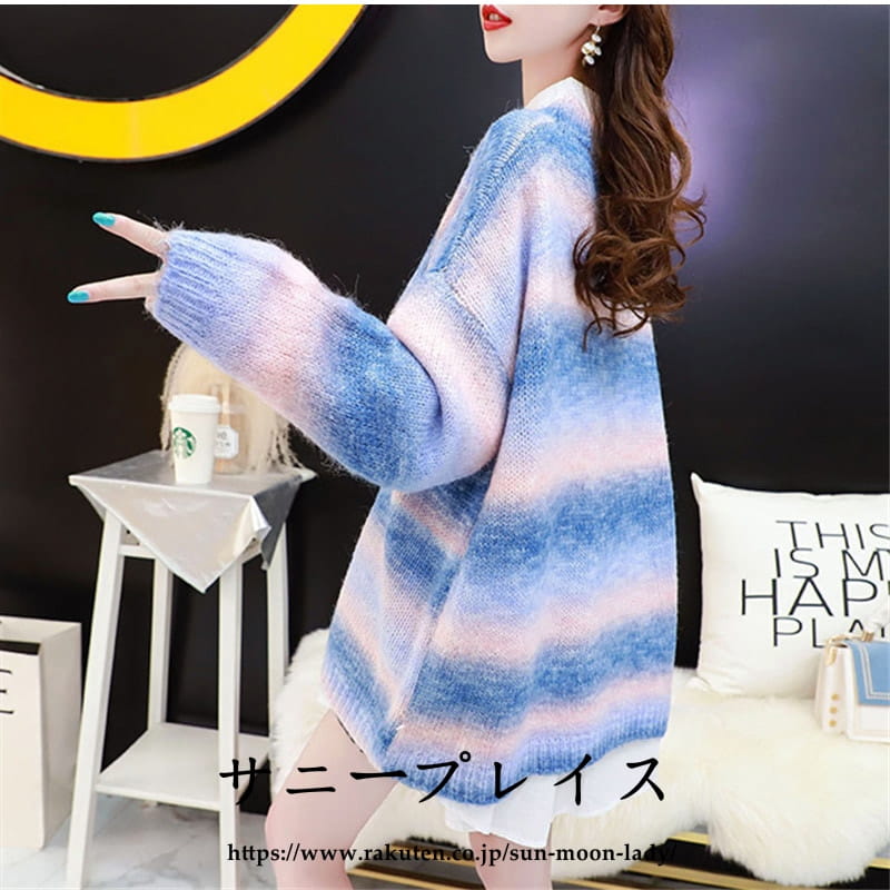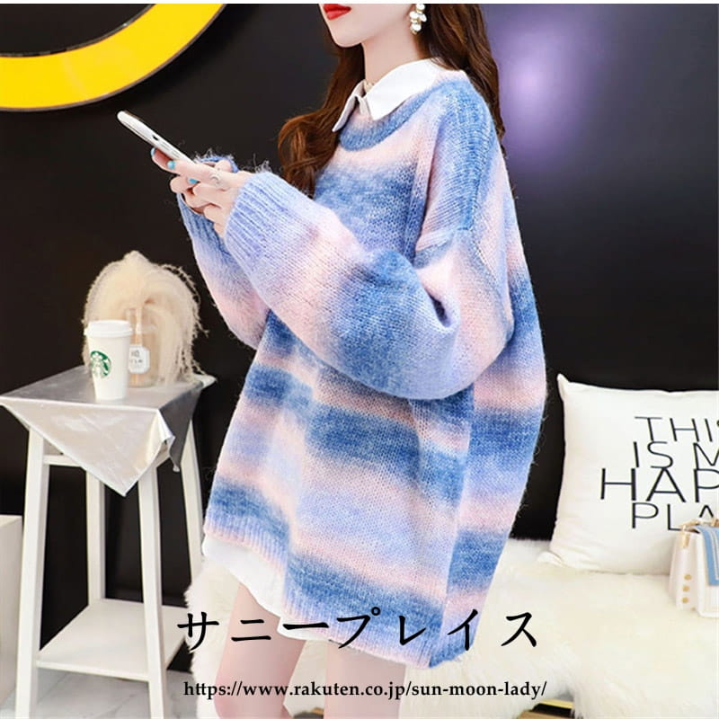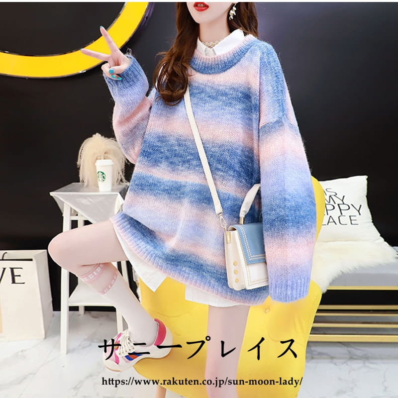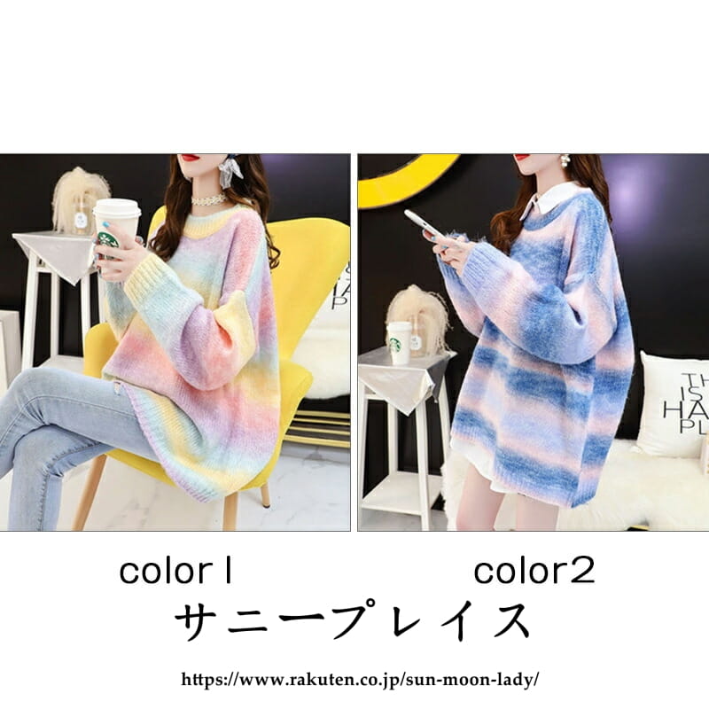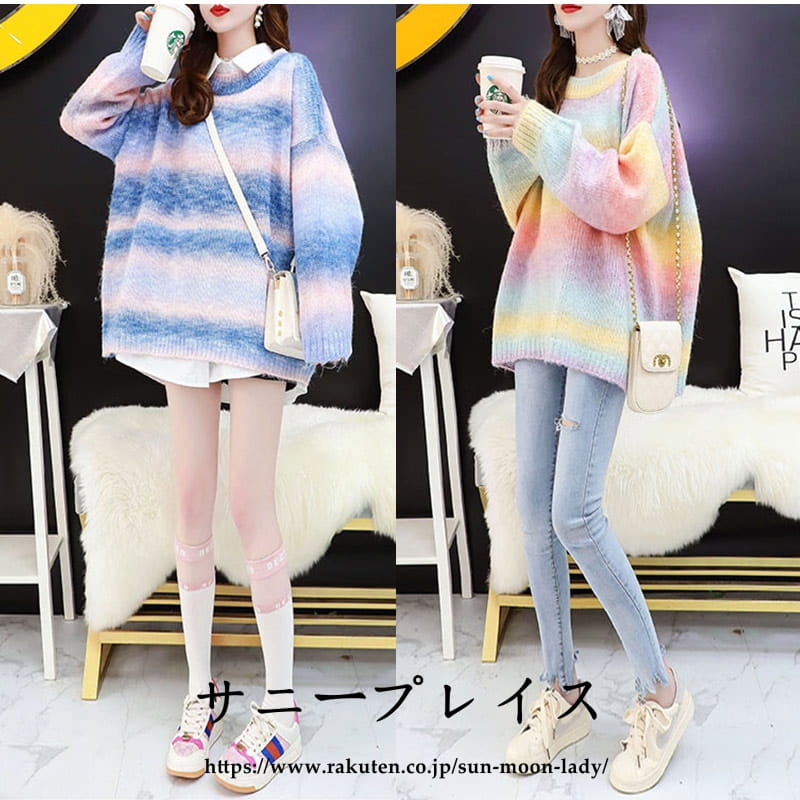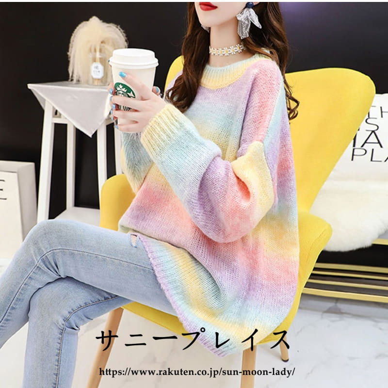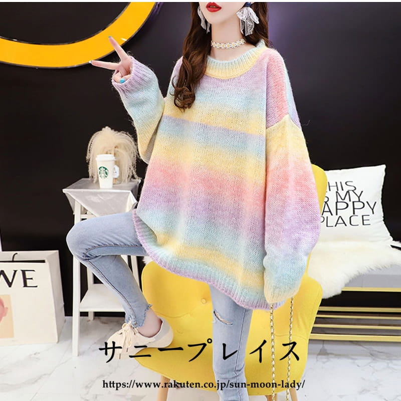 セーター ニットレディース 虹色 クル