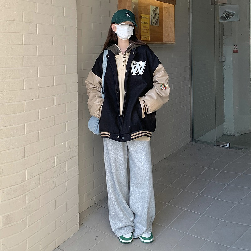 全2色 ジャケット 長袖 切り替え バイカラー 配色 体型カバー 大きいサイズあり ユニセックス 男女兼用 原宿系ファッション 韓国風 ダンス衣装 POP カワ 個性 奇抜 かわいい 青文字系 アウタ