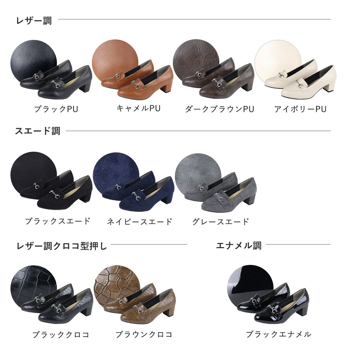 カラー: ブラッククロコ ブラックエナメル ブラックPU ブラックスエード ブラウンクロコ キャメルPU ダークブラウンPU グレースエード アイボリーPU ネイビースエード