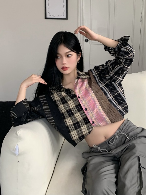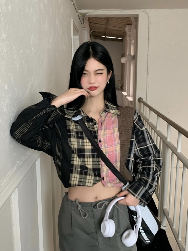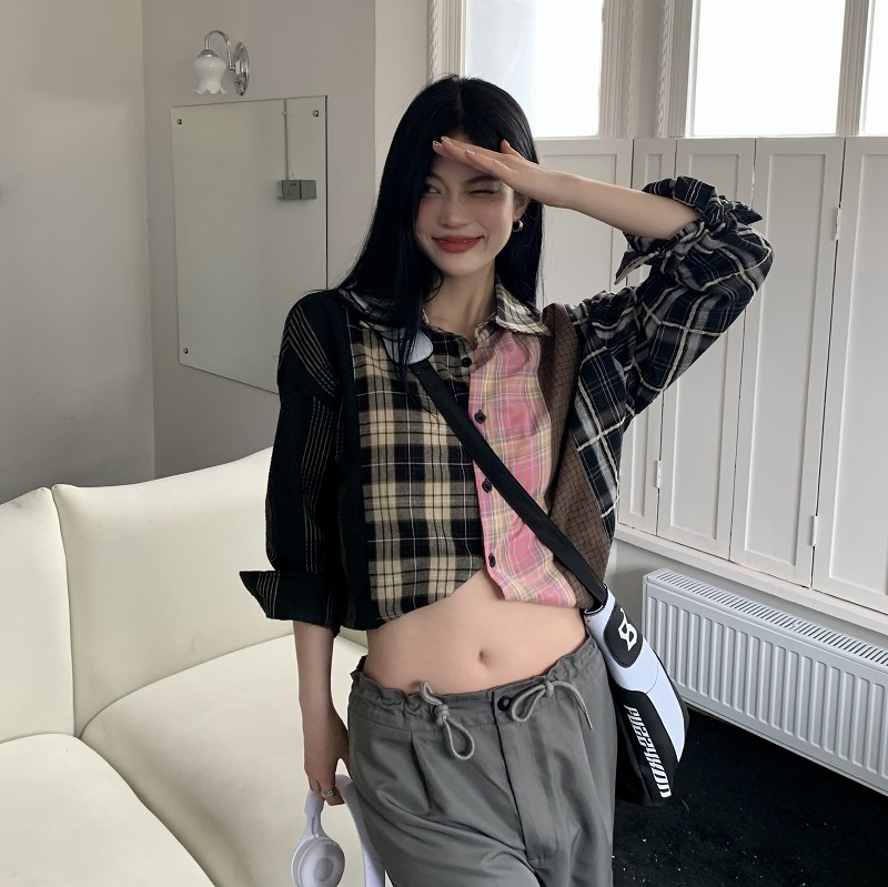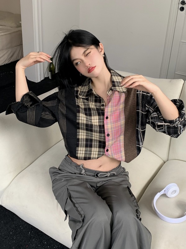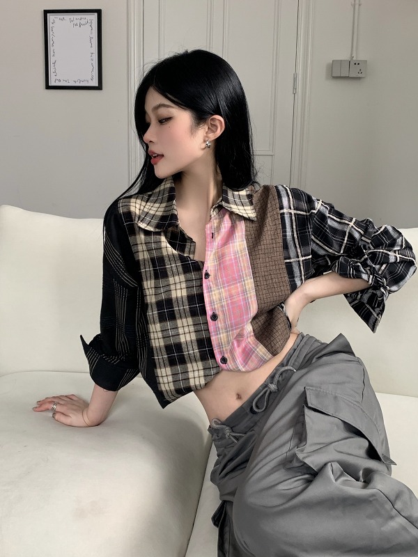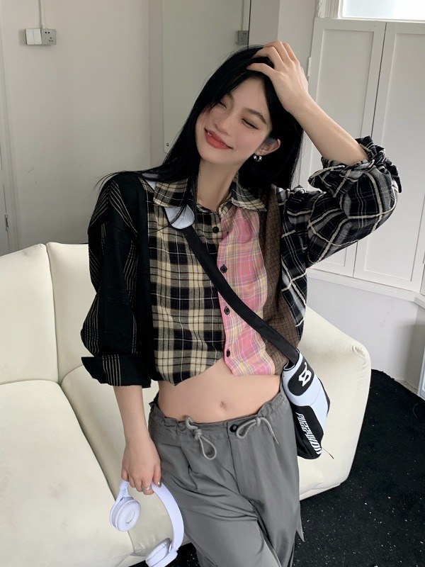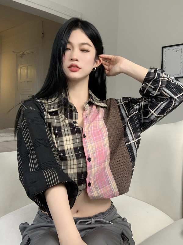 ブラウス シャツ ショート丈 長袖 切