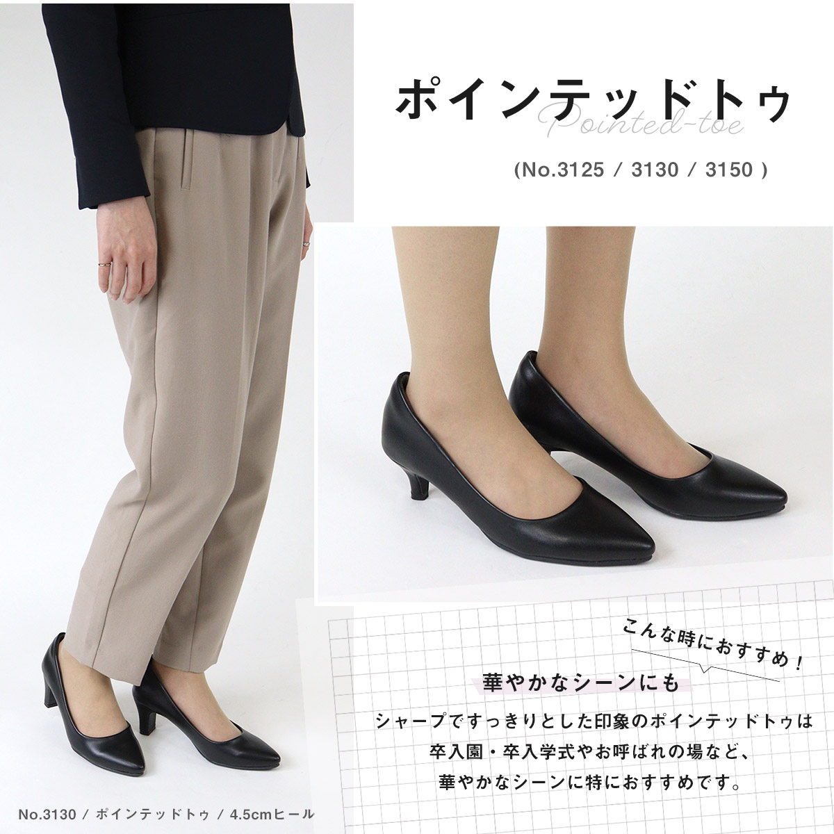 カラー: 【A】3125ポインテッドトゥ/3.5cm 【B】3115スクエアトゥ/3.5cm 【C】3116ストラップ/3.5cm 【D】3122ローファー/3.5cm 【E】3110ラウンドトゥ/3.5cm 【F】3130ポインテッドトゥ/4.5cm 【G】3135スクエアトゥ/4.5cm 【H】3136ストラップ/4.5cm 【I】3145ラウンドトゥ/4.5cm 【J】3150ポインテッドトゥ/6.5cm 【K】3155スクエアトゥ/6.5cm 【L】3156ストラップ/6.5cm 【M】3165ラウンドトゥ/6.5cm