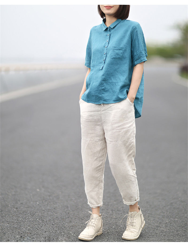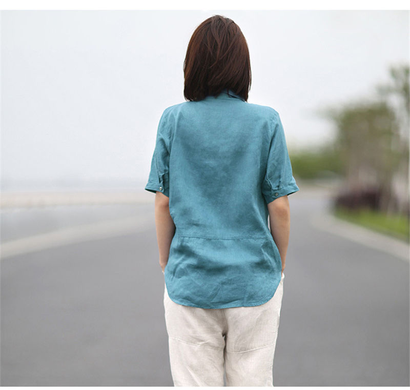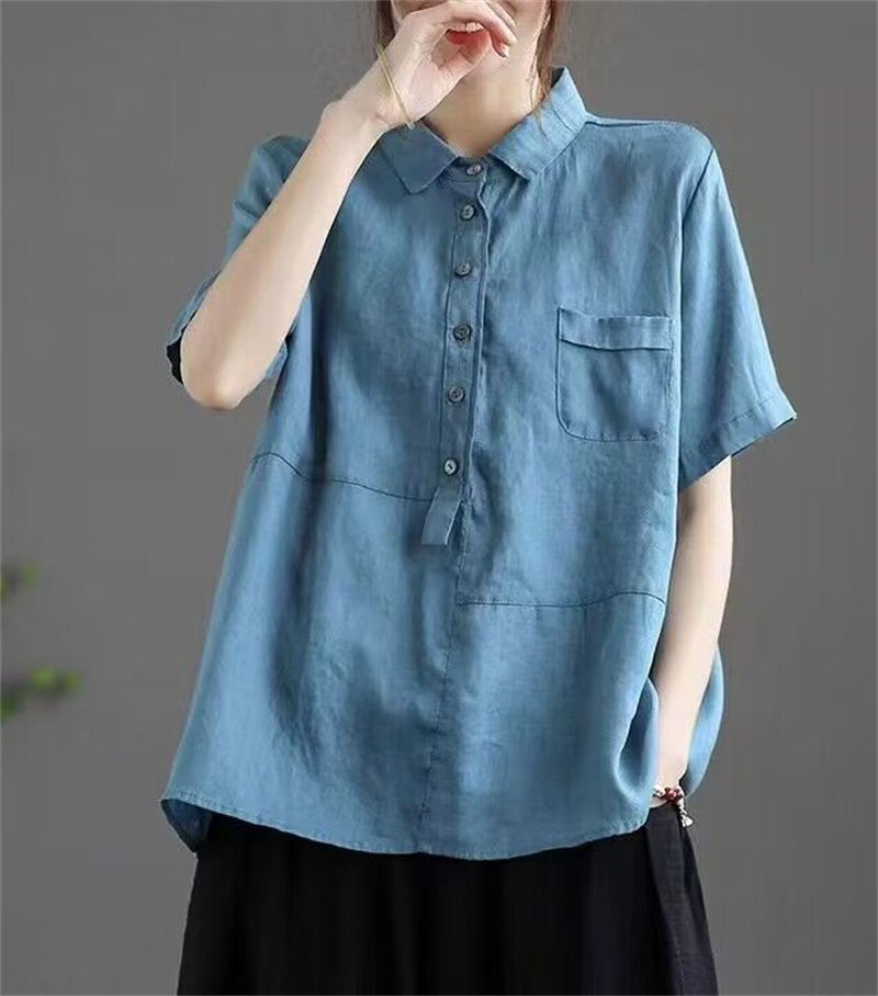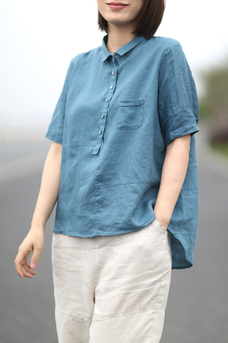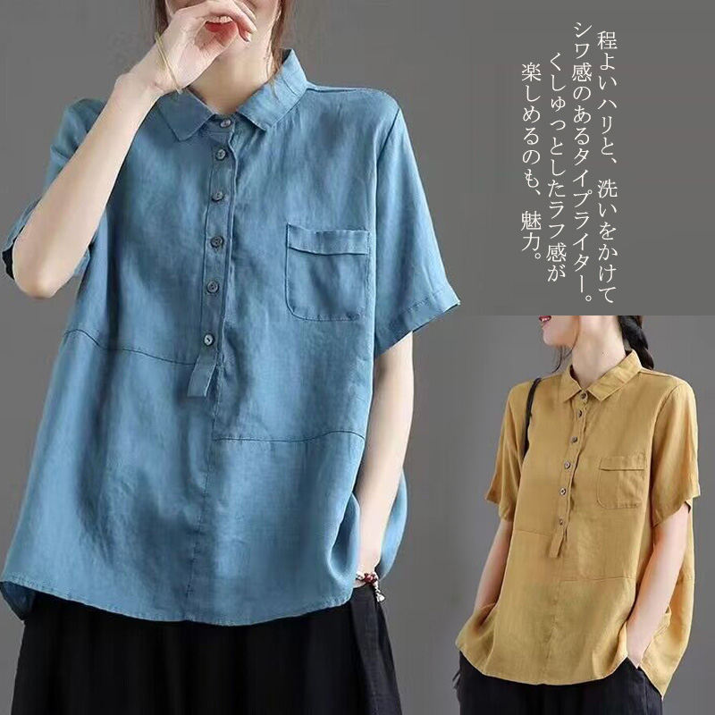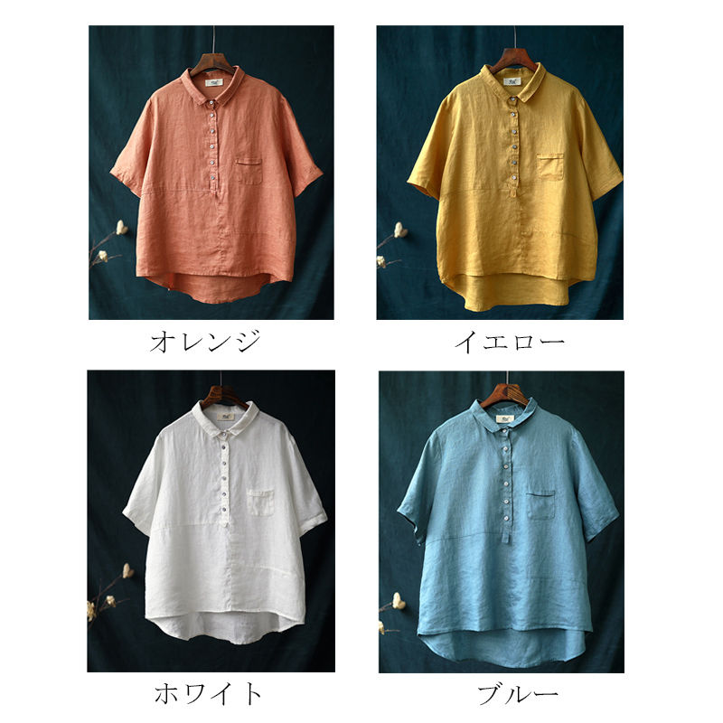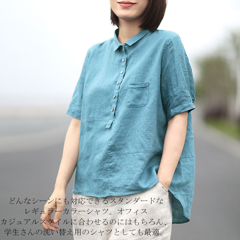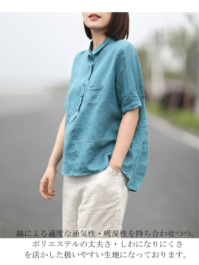 シャツ 綿麻 リネンシャツ 無地 通気