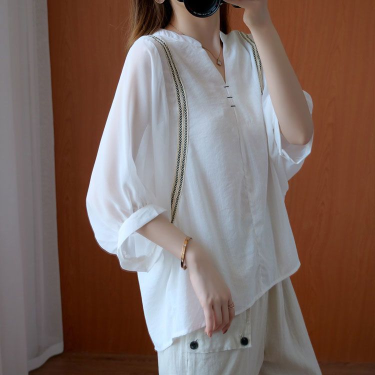 シフォンブラウス シアーブラウス ボリューム袖