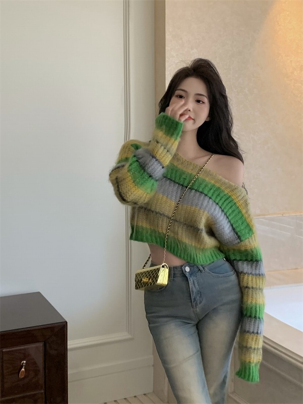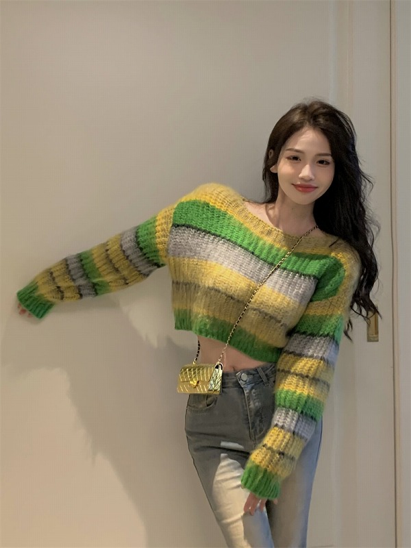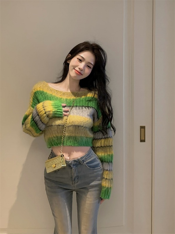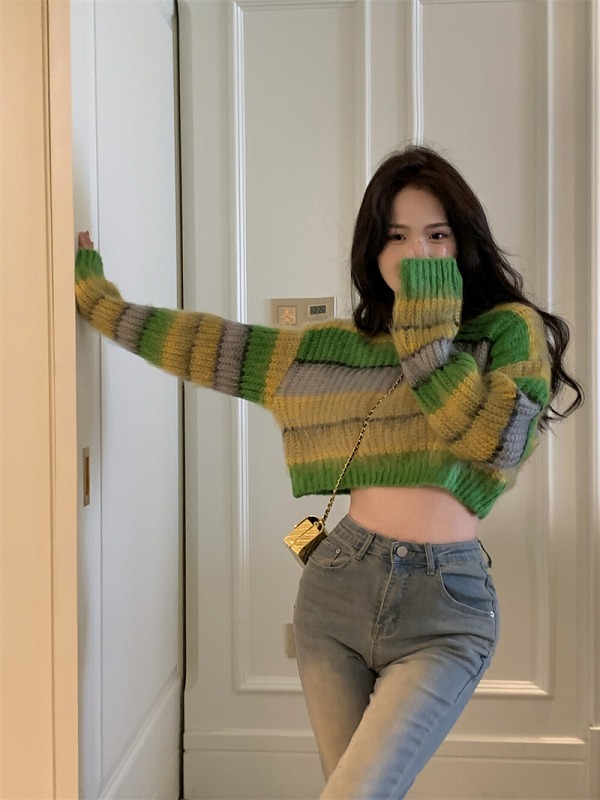 春物 春コーデ 夏物 夏コーデ 春夏新作 秋物 秋コーデ 冬物 冬コーデ 秋冬新作 新品 韓国ファッション レディース 流行 大人気 オシャレ 大人 きれいめ 綺麗目 上品 お洒落 スタイルUP 20代 30代 40代 50代 かっこいい 格好いい かわいい 可愛い lady trend fashion ニット セーター 長袖 ショート丈 長袖 バイカラー 配色 体型カバー 着痩せ カットソー ボーダー柄 ストライプ柄 ライン ファッション sweet系 トップス カットソー