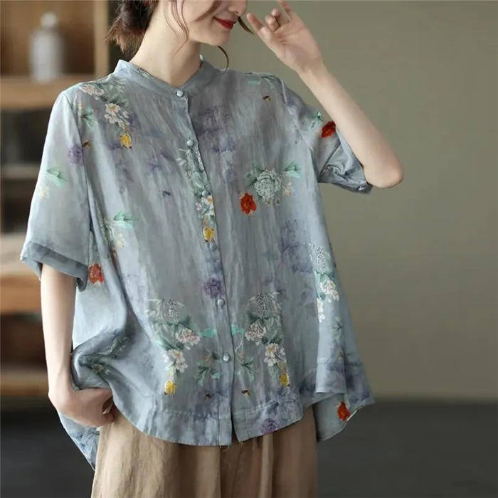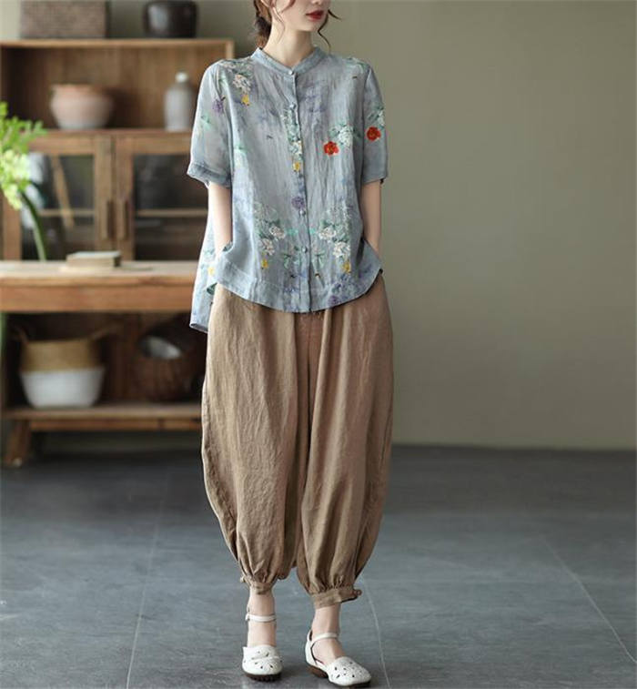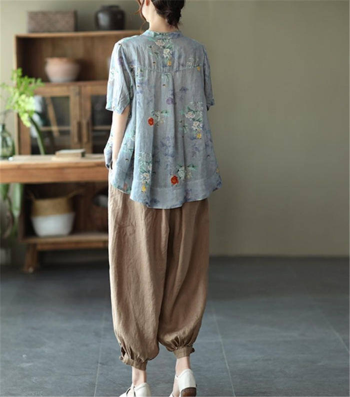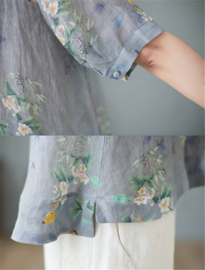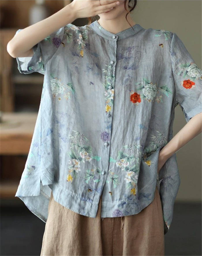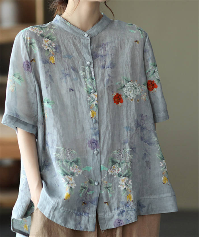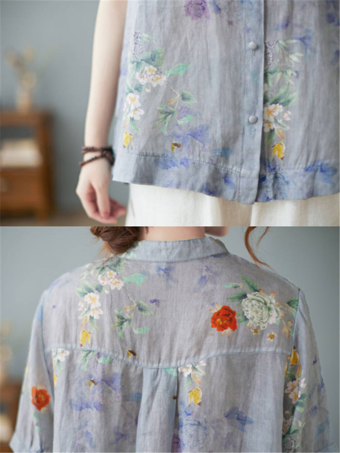 総柄 リネン シャツブラウス レディー