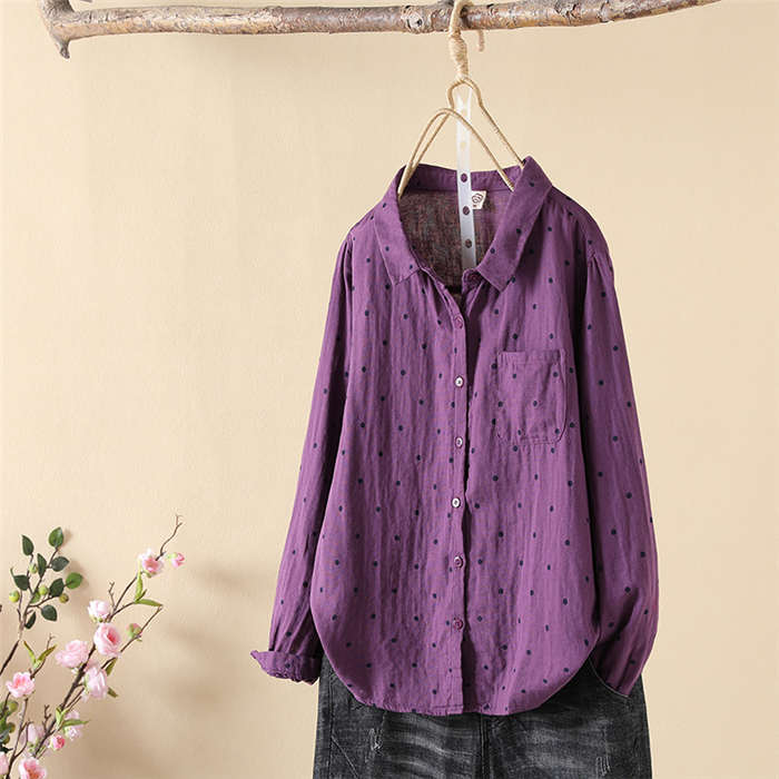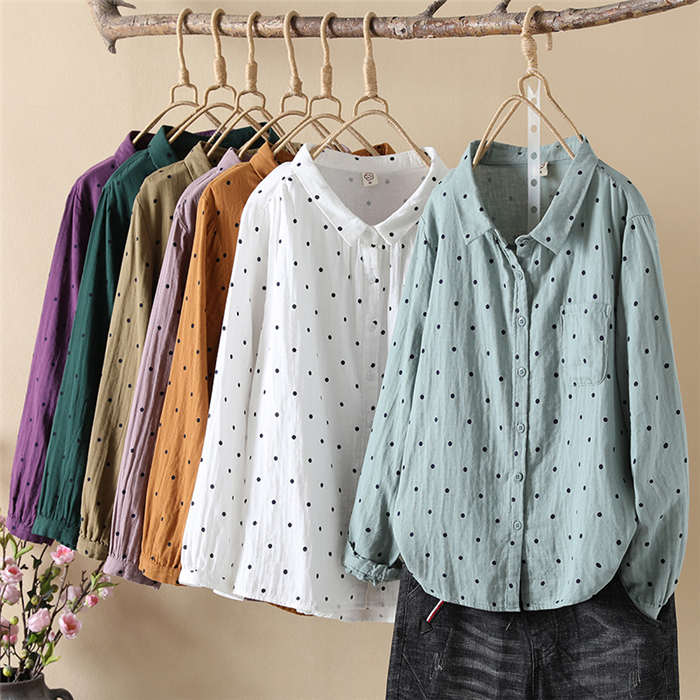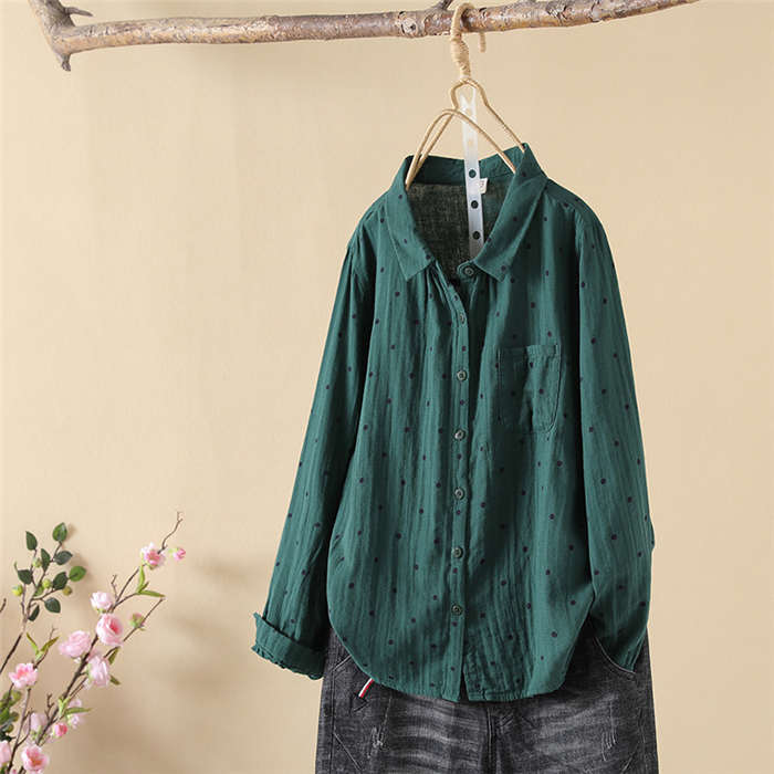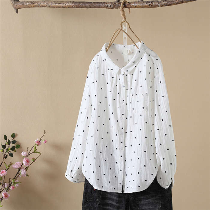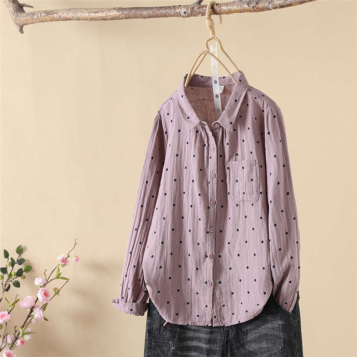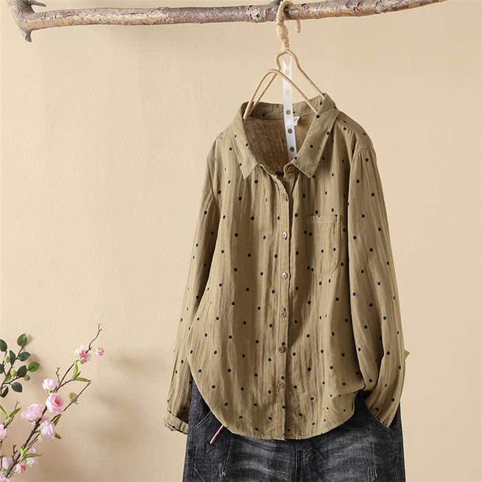 ドット柄 ガーゼシャツ シャツブラウス